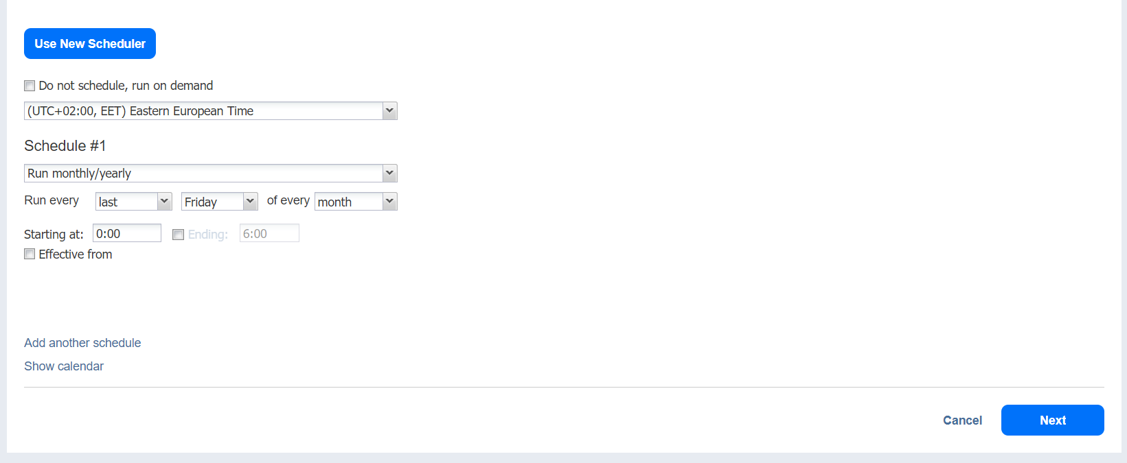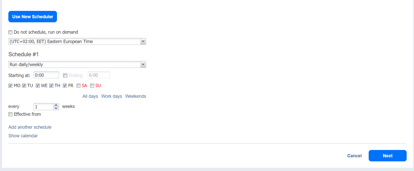 • Optionally, click Add another schedule if you want to add more than one schedule.