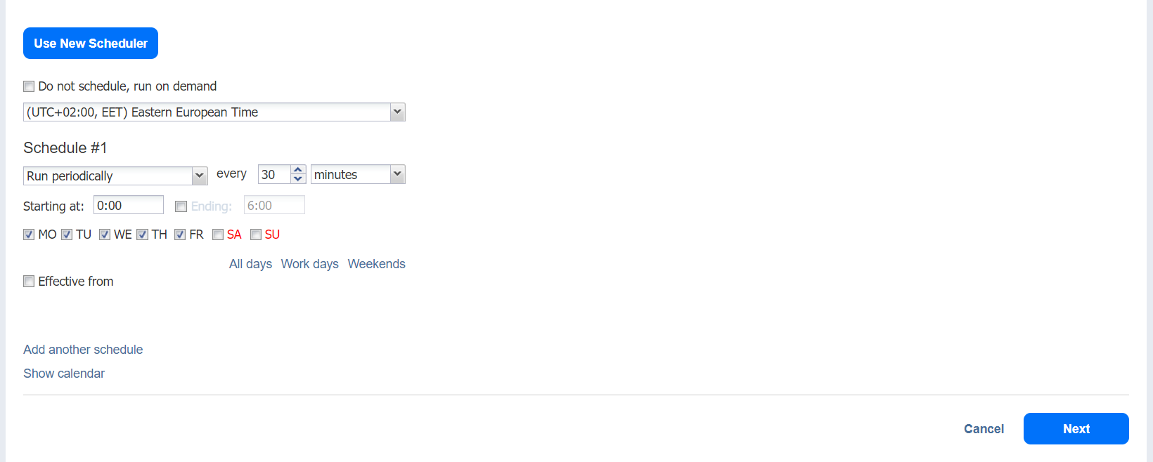 • Effective from: If selected, the schedule will come into effect on the date picked.
