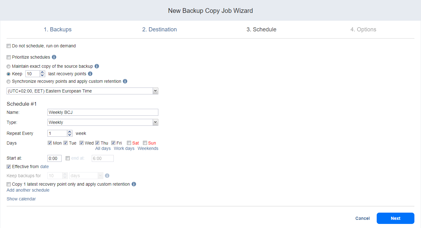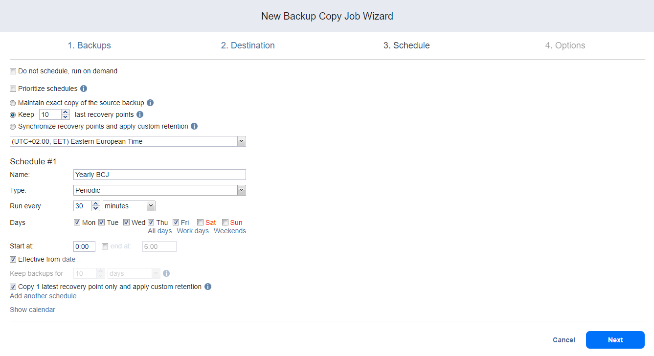 Backup Copy Job Wizard: Schedule