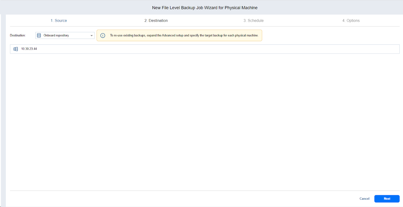 File Level Backup Wizard for Physical Machine: Destination