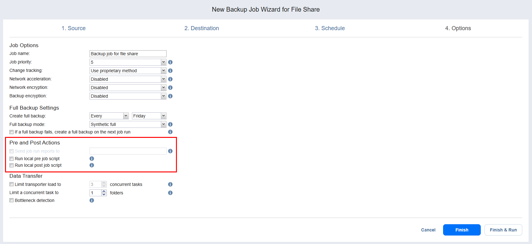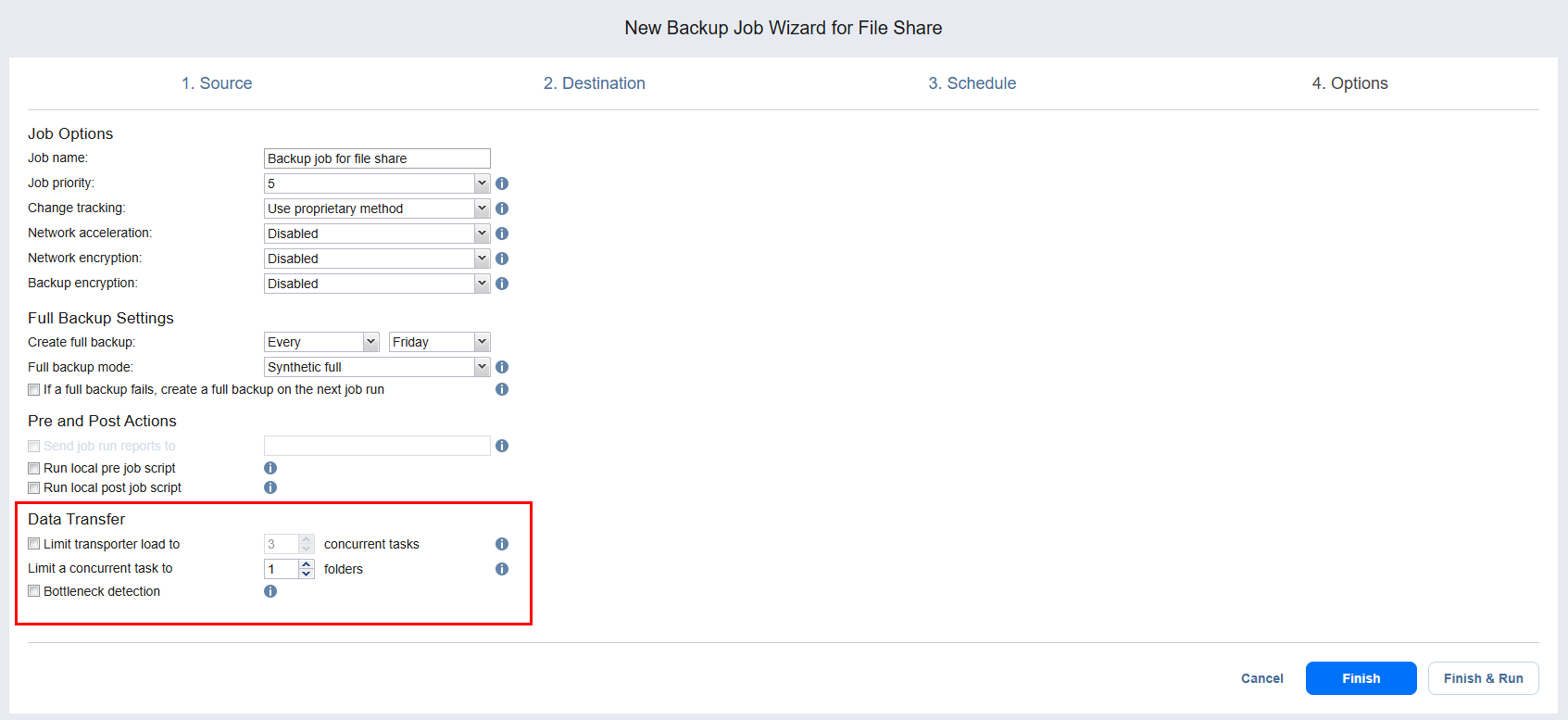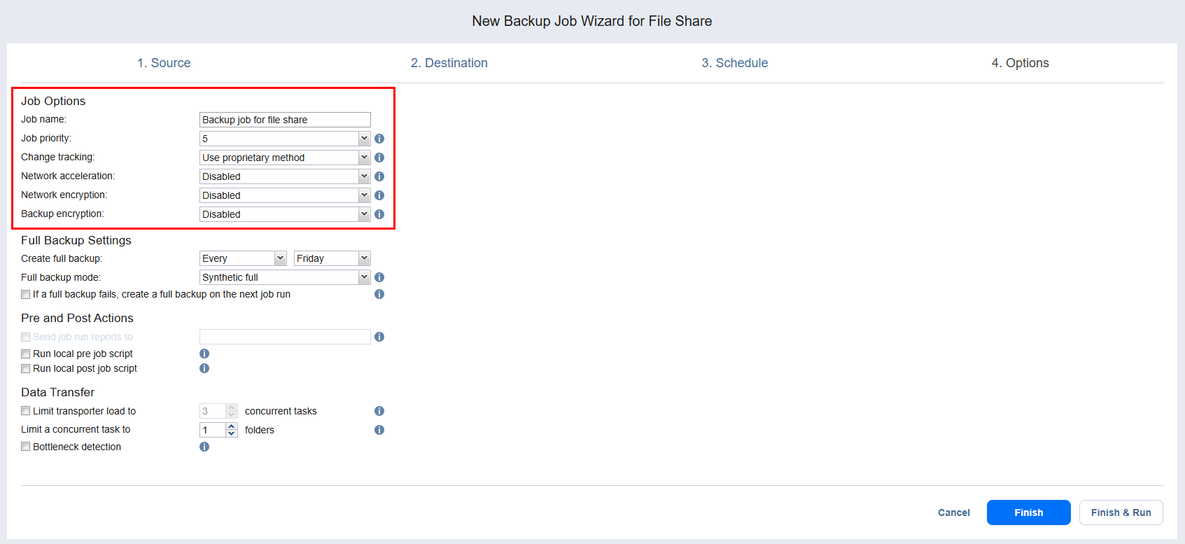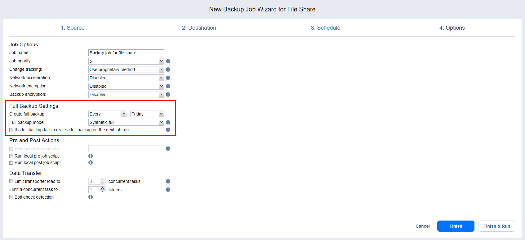 Backup Job Wizard for File Share: Options