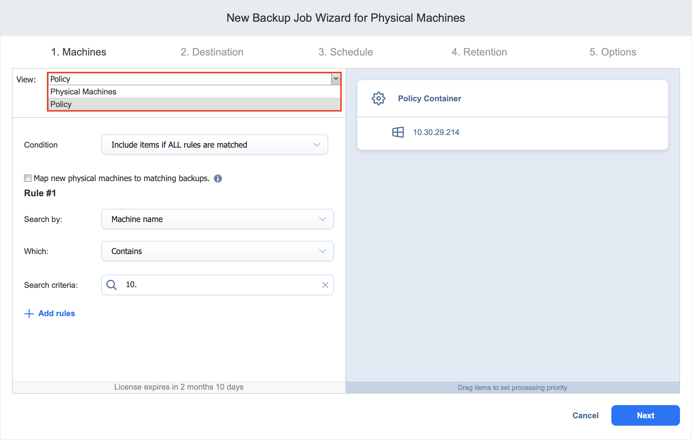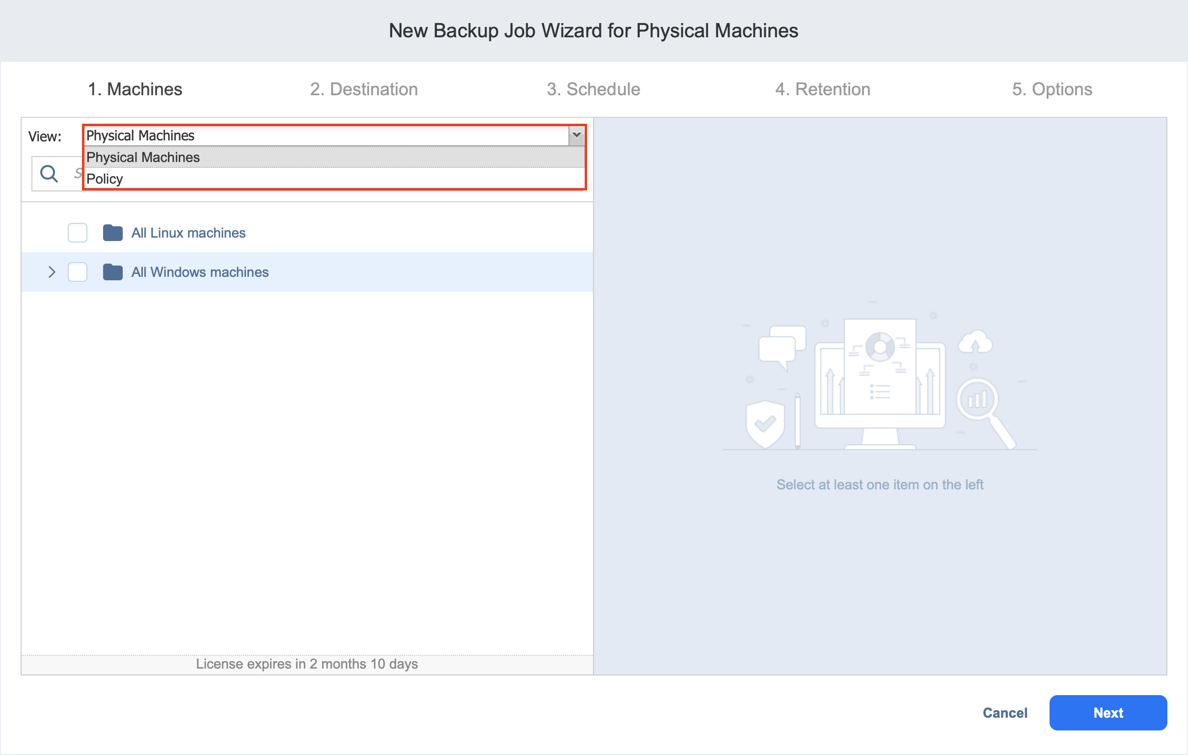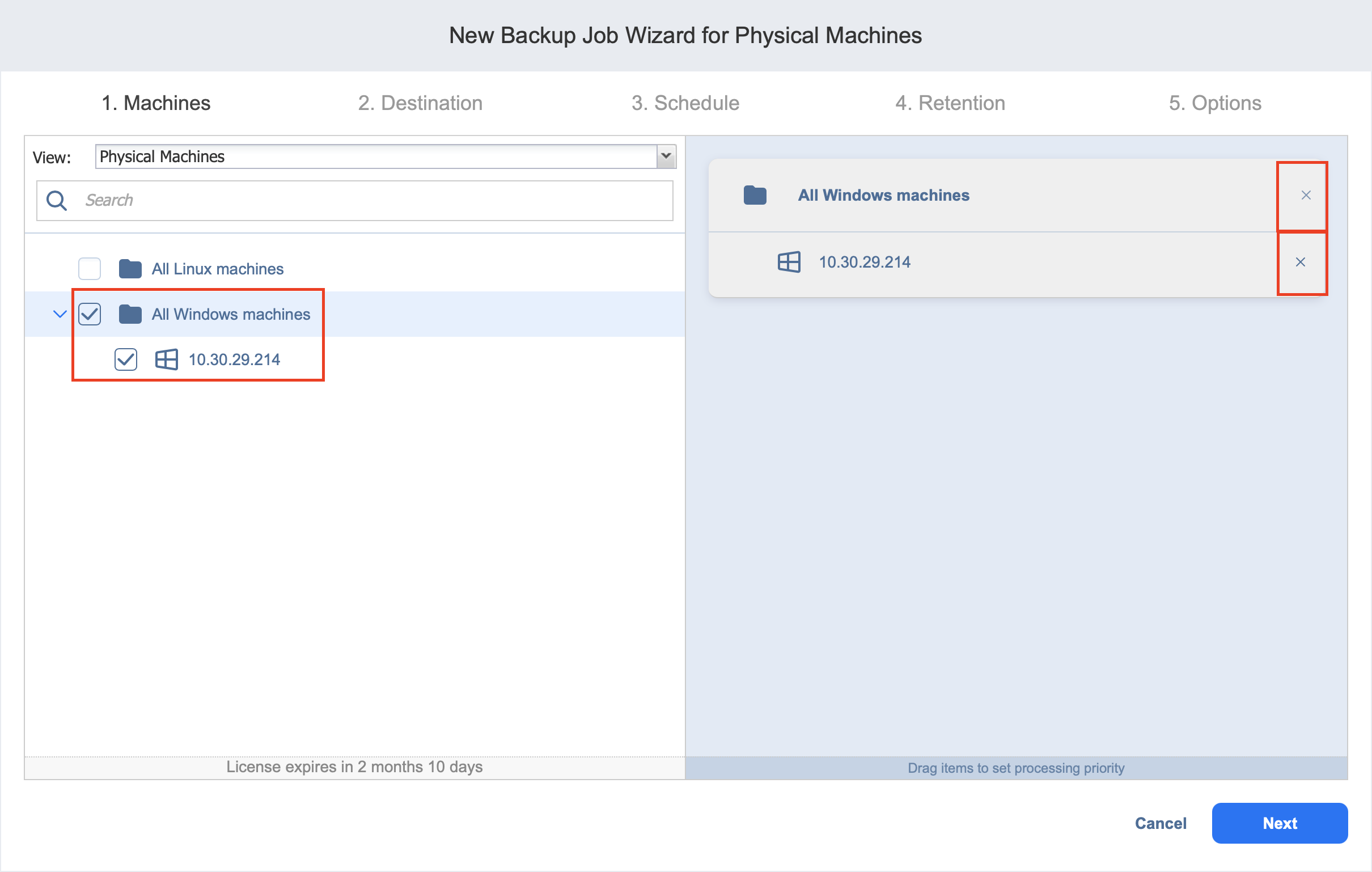 Backup Job Wizard for Physical Machine: Machines