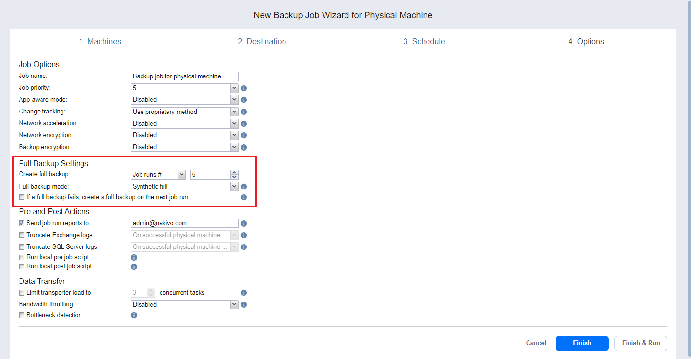 • If a full backup fails, create a full backup on the next job run: With this option selected, the next job run creates a full backup if the current job run fails to do so.