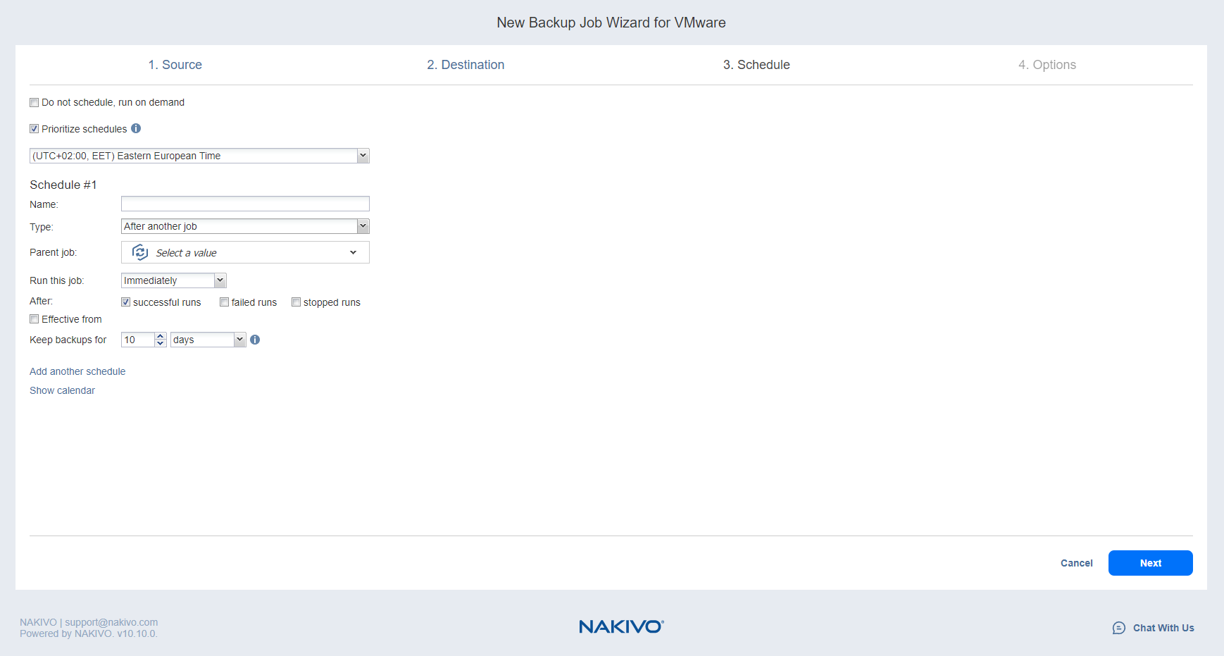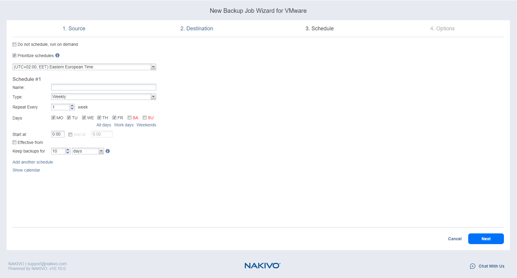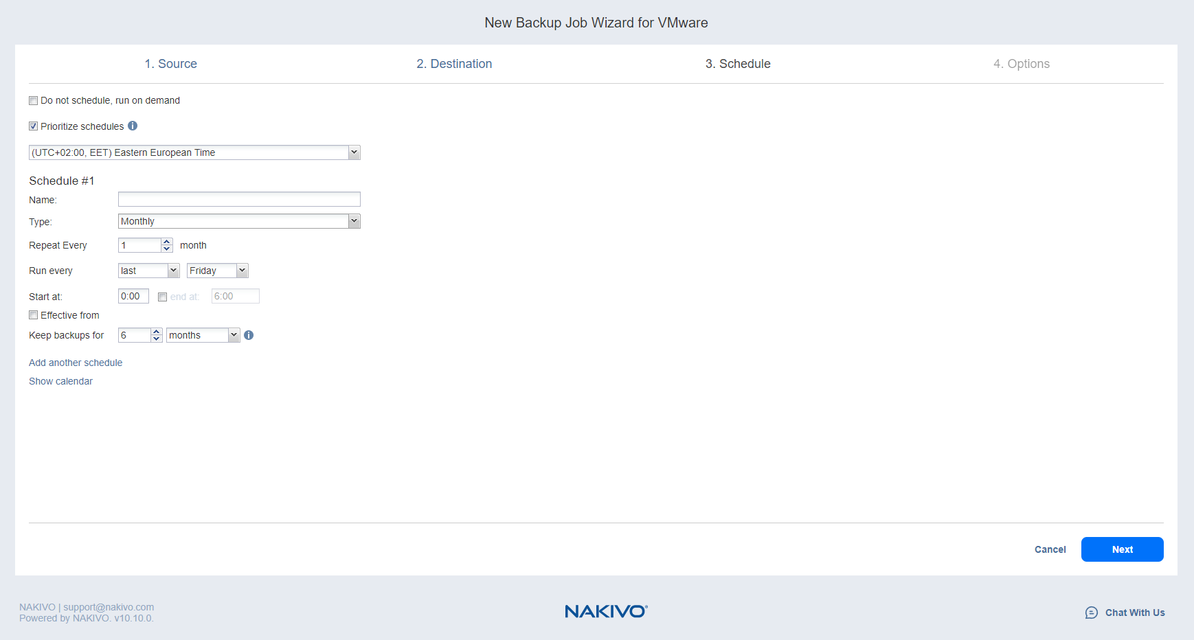 • Keep backups for: Specify how many days, months, or years NAKIVO Backup & Replication should retain the backups.