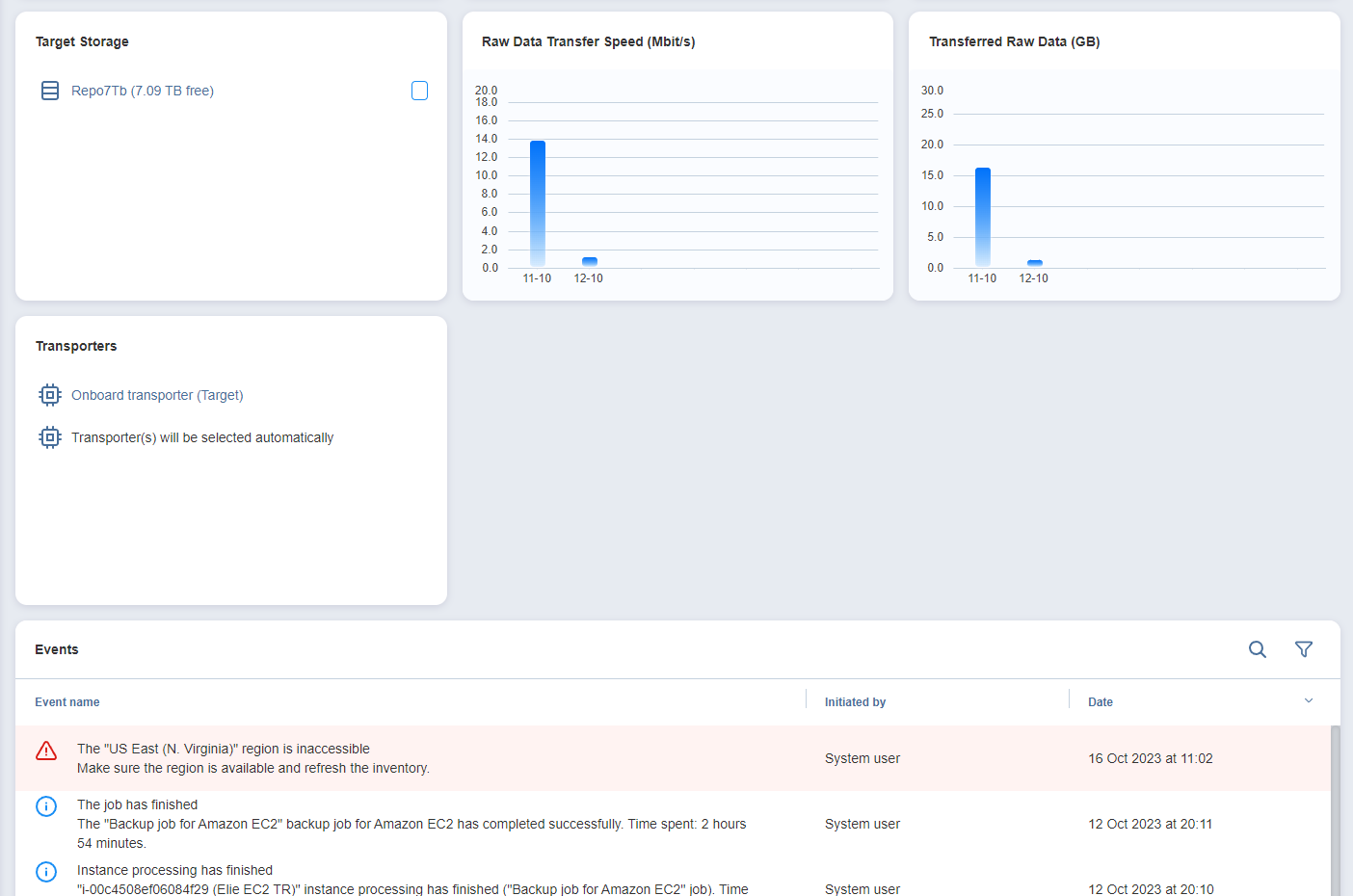 Transferred Raw Data (GB): The amount of raw transferred data before compression/deduplication for a current job run or past job run(s).