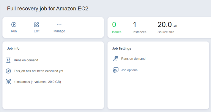 The Job Settings pane for NAKIVO Backup & Replication recovery jobs only displays the settings relevant to this particular job: