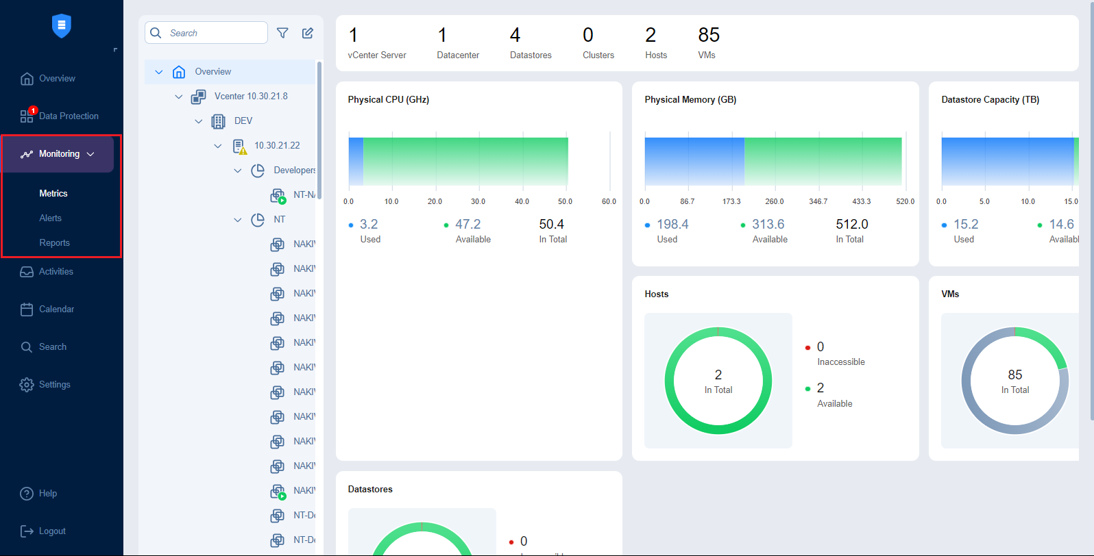 NAKIVO Backup & Replication collects and updates data about monitored items every minute.