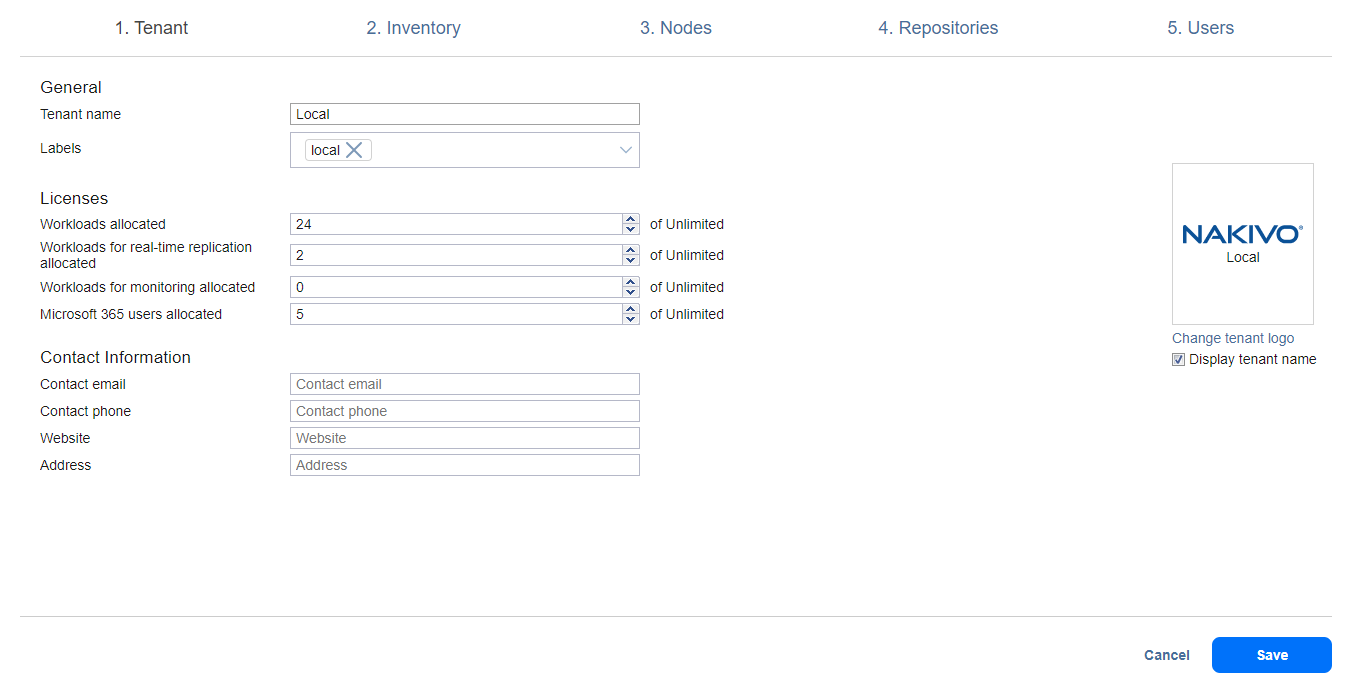 In the Tenants table, you can edit, disable, enable, or delete tenants.