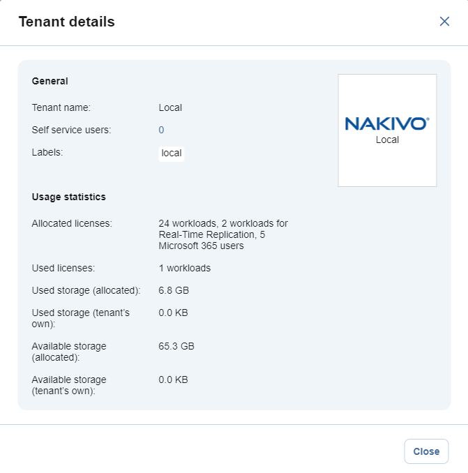 To open the Tenant details popup window, hover over the corresponding row and click the ellipsis Manage button.