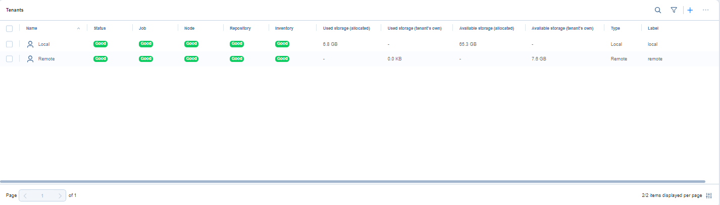 If a tenant has multiple statuses, the priorities of displaying these statuses are: Disabled > Inaccessible/Disconnected > Good/Warning/Error.