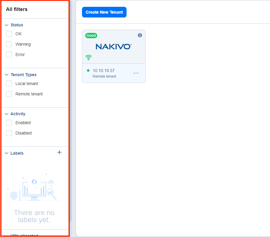 VMs Allocated: Filters tenants by the number of VMs allocated to them