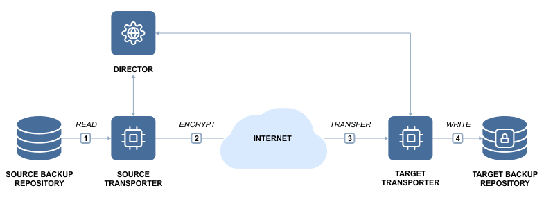 While you can keep copies of your backups locally, having at least one copy of your most critical backups offsite can save you a lot of trouble in case a local disaster should wipe your primary backups. The secondary Backup Repository can be placed in any location that has a connection to the Internet, since backup data can be transferred via AES 256 encrypted link, and your secondary backup repository can be encrypted as well.