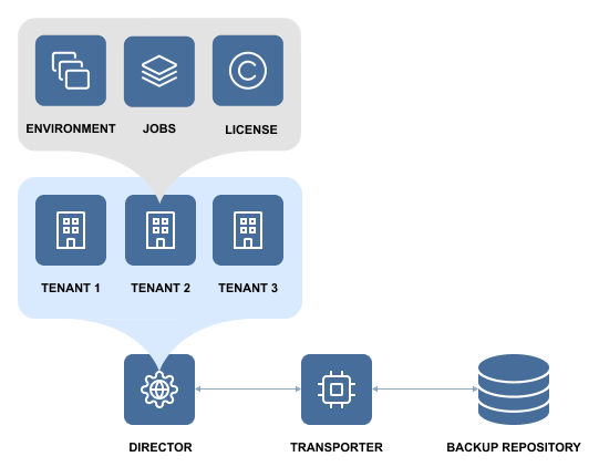 In Multi-tenant mode, each tenant can access their own environment through a self-service portal, and perform all data protection and recovery tasks. At the same time, tenants are isolated from each other and cannot access the environment and jobs of other tenants.