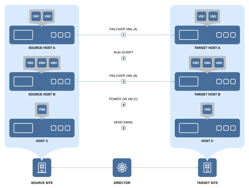 If your Site Recovery Job contains a Failover action, the action will be executed as follows: