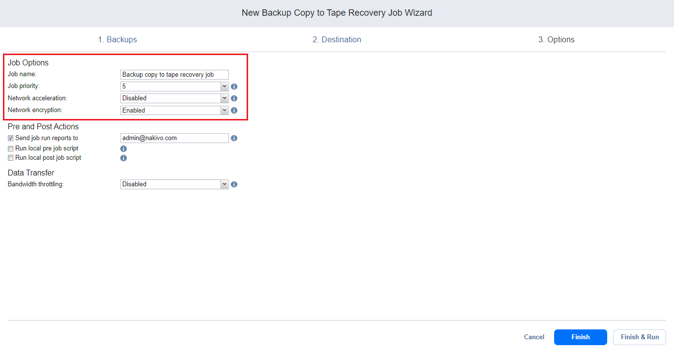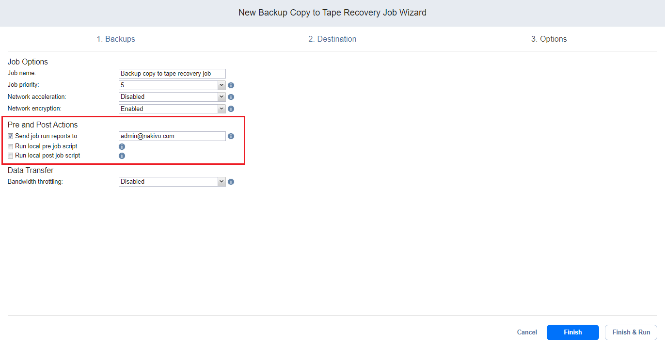 NAKIVO Backup & Replication can send email notifications about job completion status to specified recipients. This feature complements global notifications and allows you to configure notifications on a per-job level.