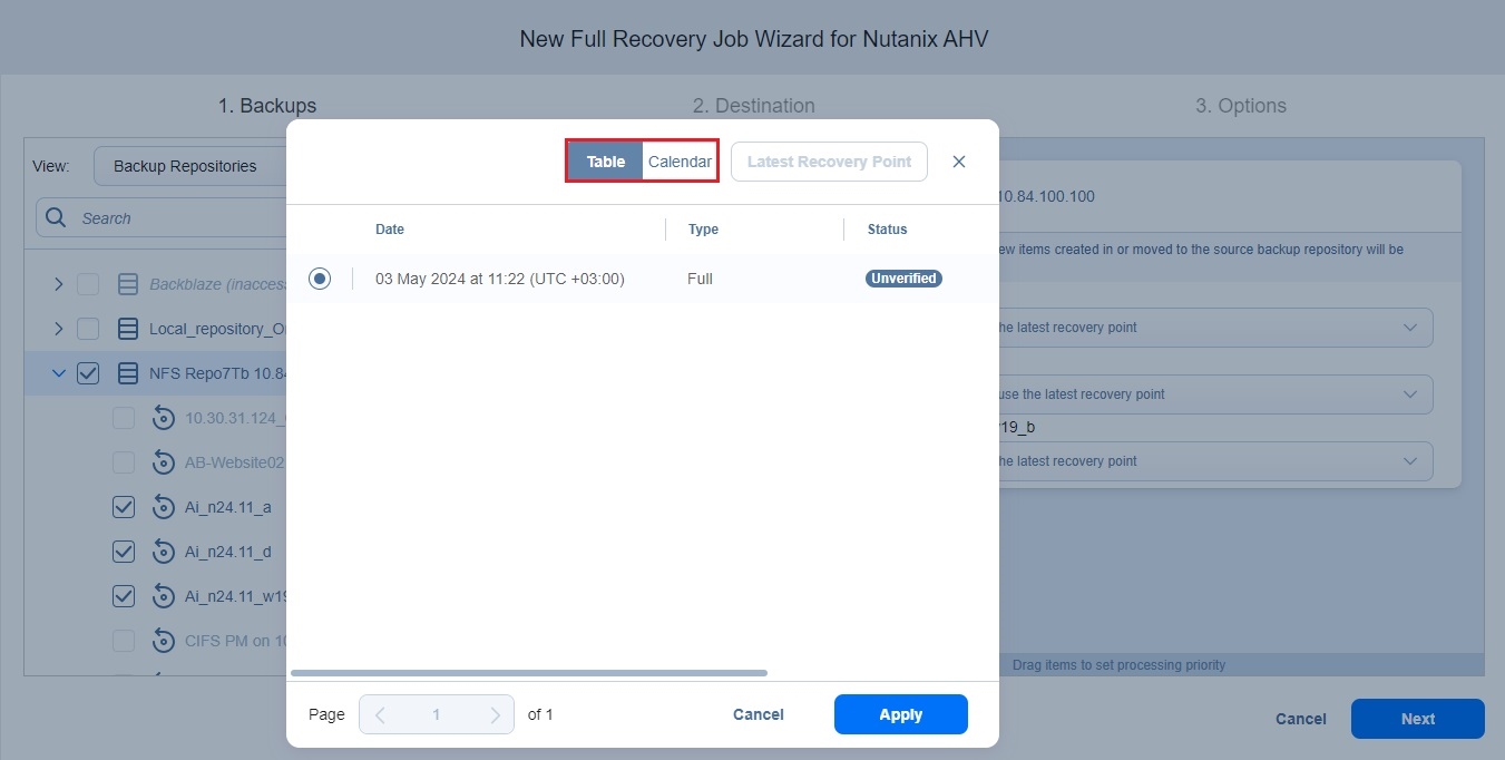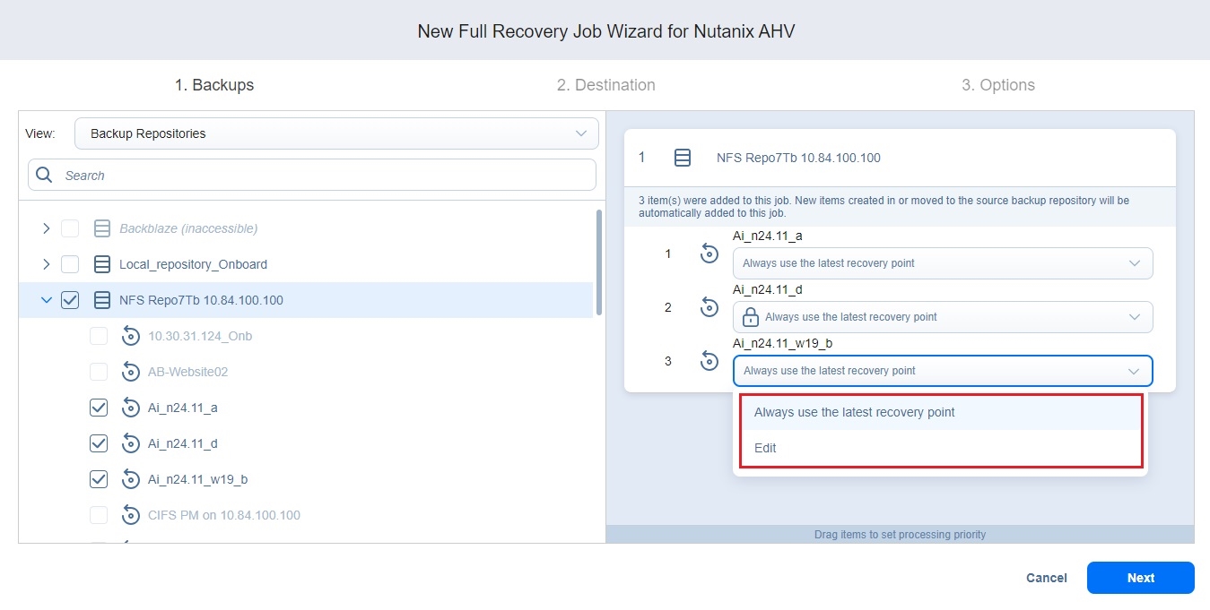 Recovery Job Wizard for Nutanix AHV: Backups