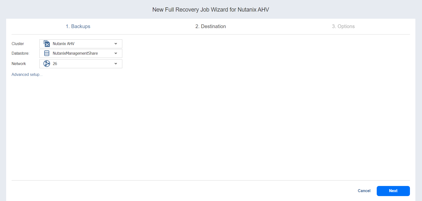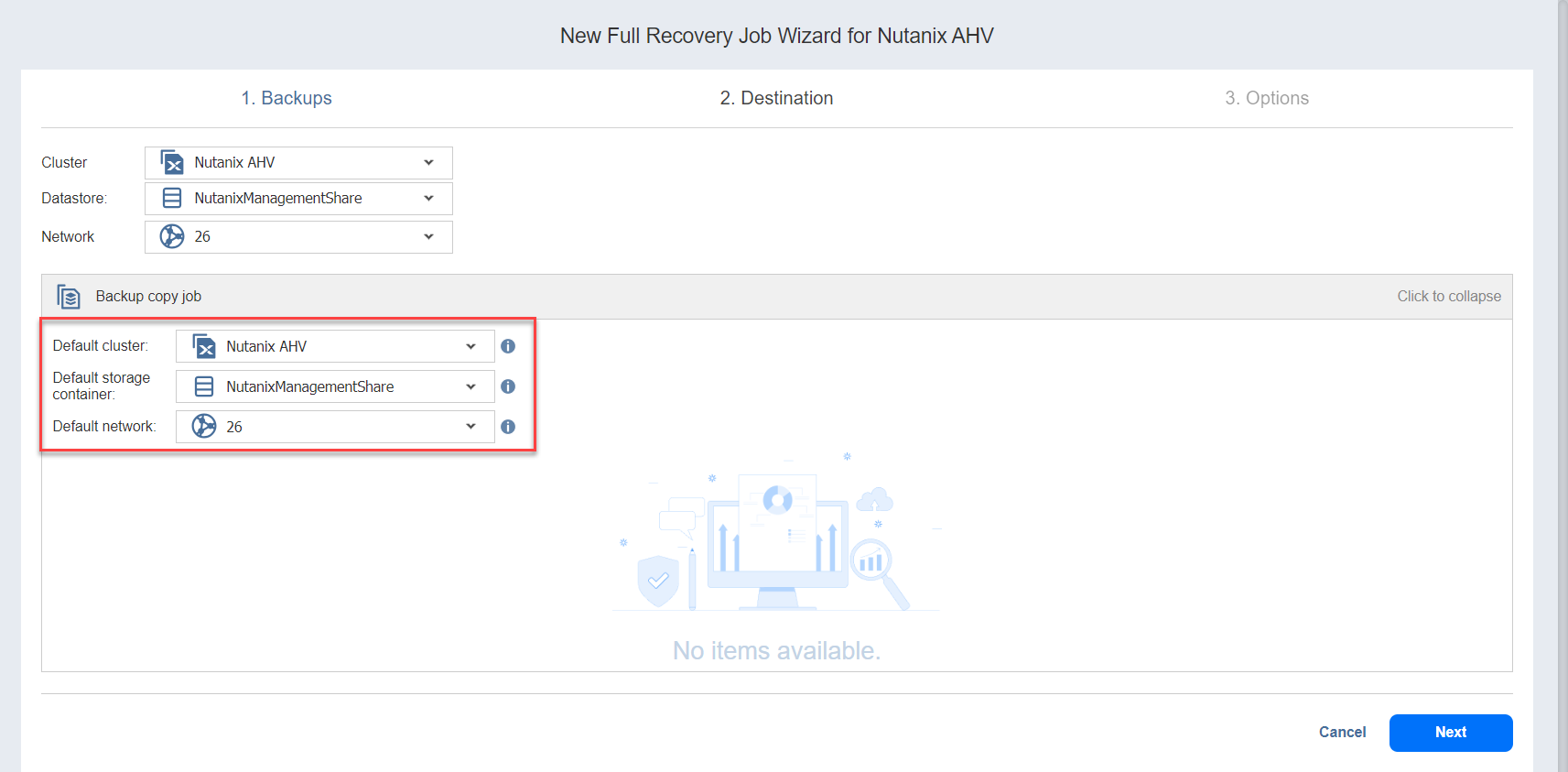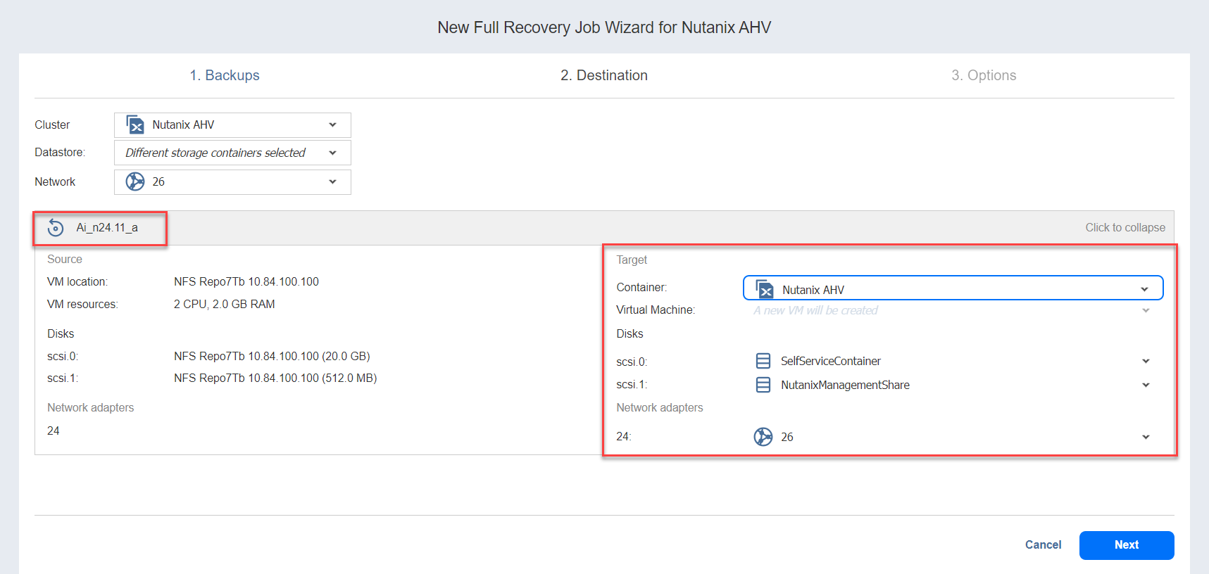 Recovery Job Wizard for Nutanix AHV: Destination