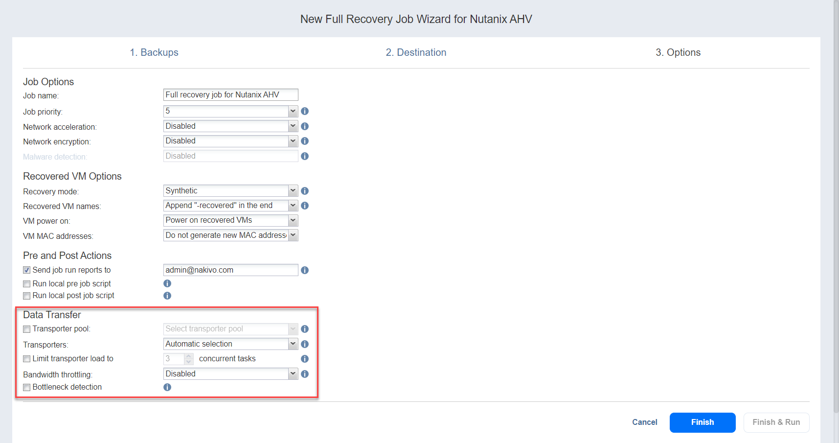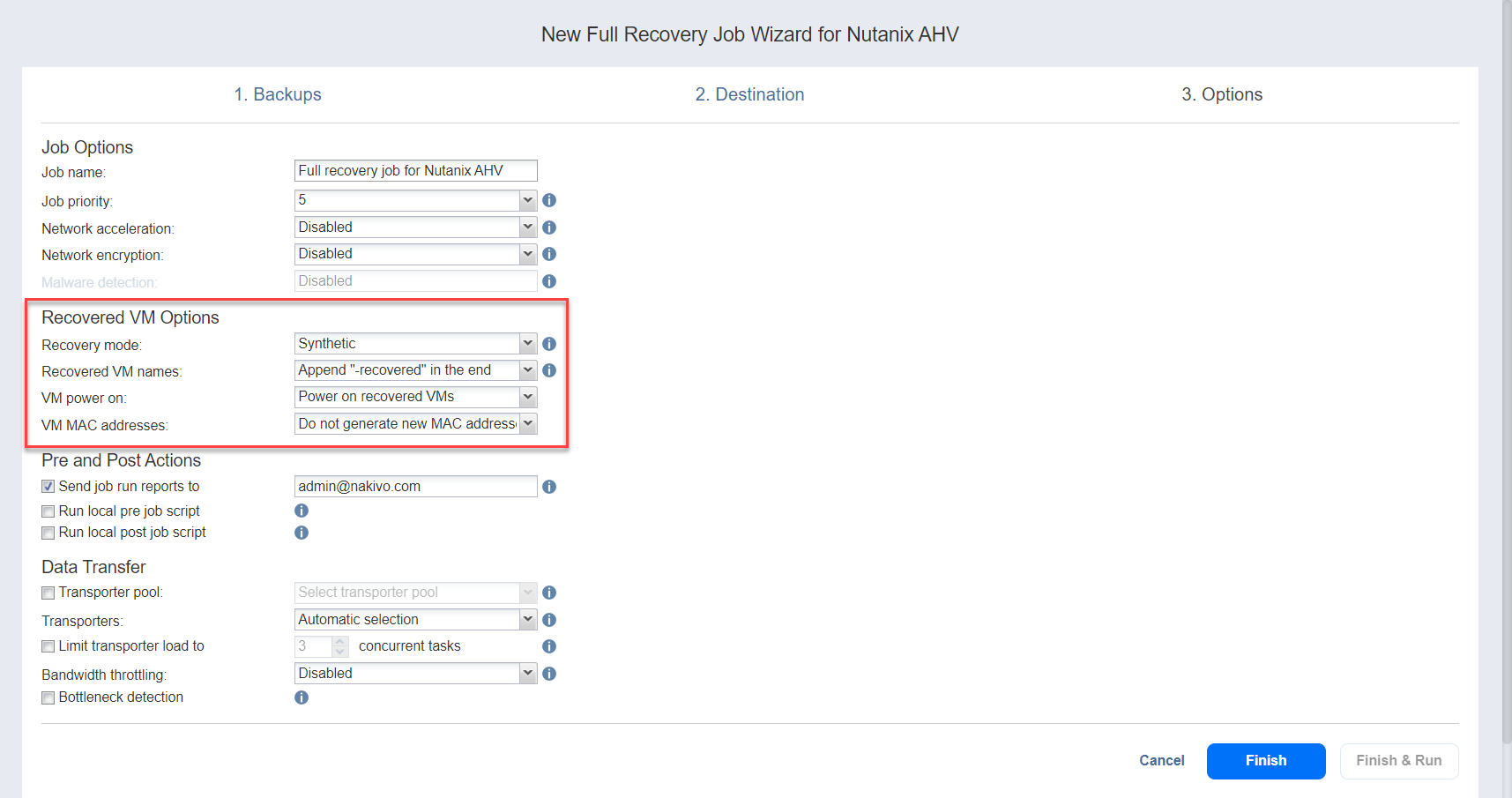 Completing the New Full Recovery Job Wizard for Nutanix AHV