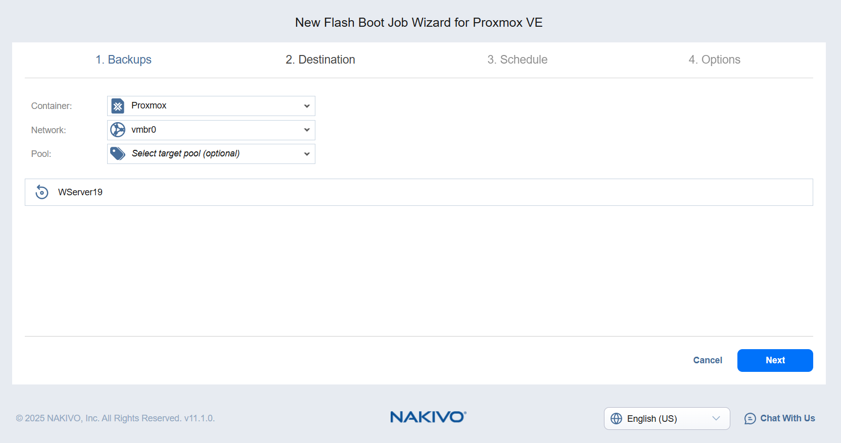 Proxmox VE Flash Boot Job Wizard: Destination