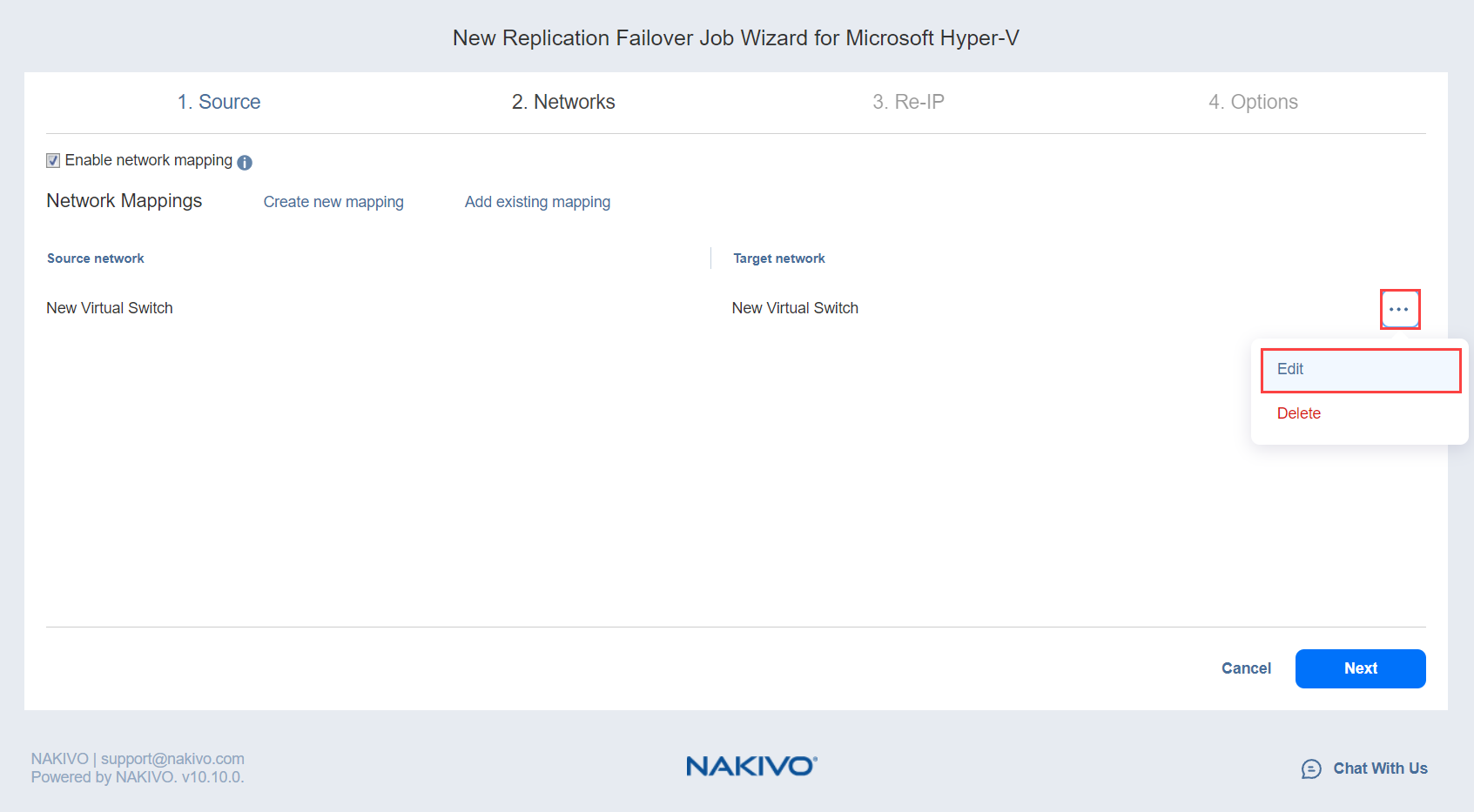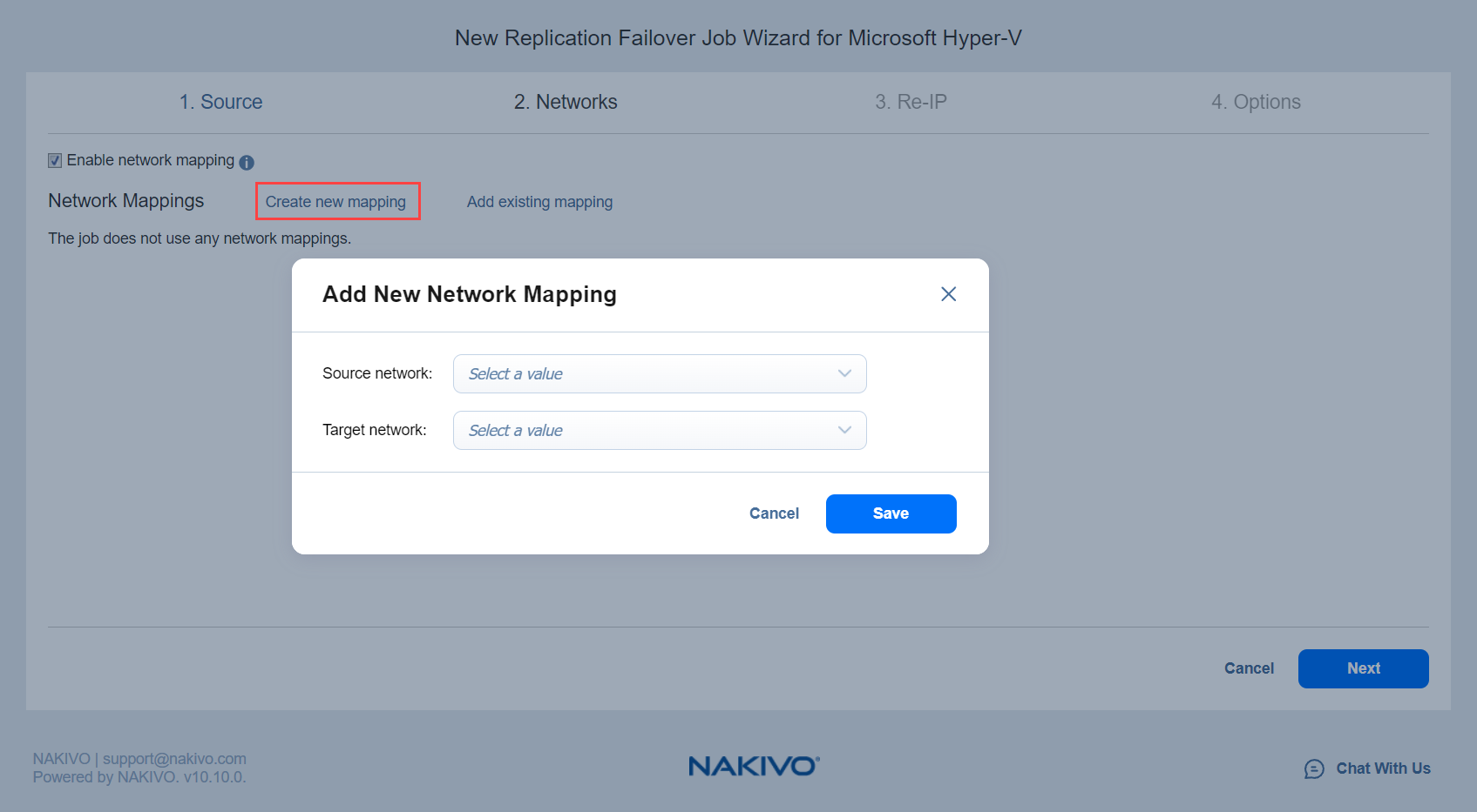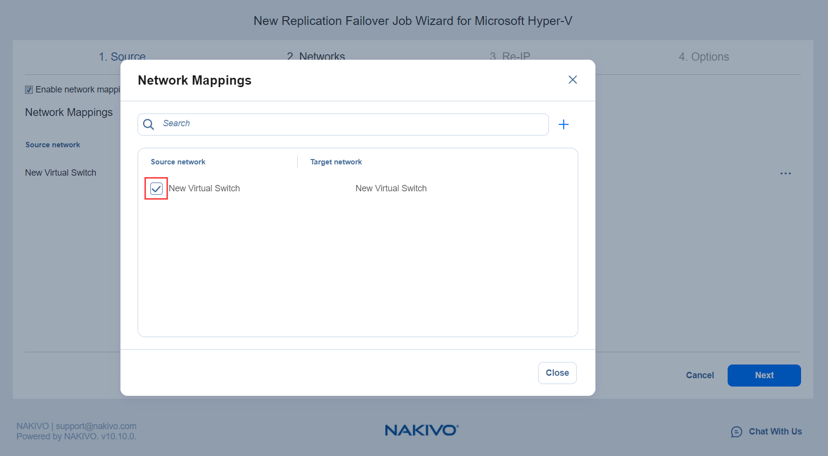 Failover Job Wizard for Microsoft Hyper-V: Networks