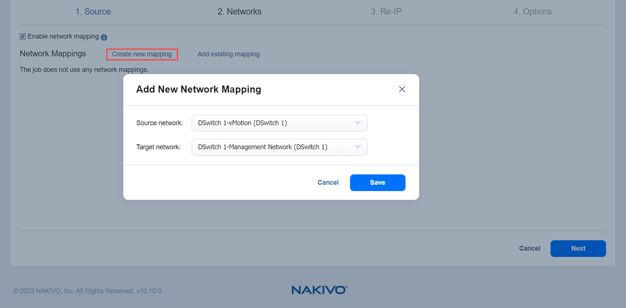 To map source VMware virtual networks to appropriate target virtual networks, please do the following on the Networks page of the wizard: