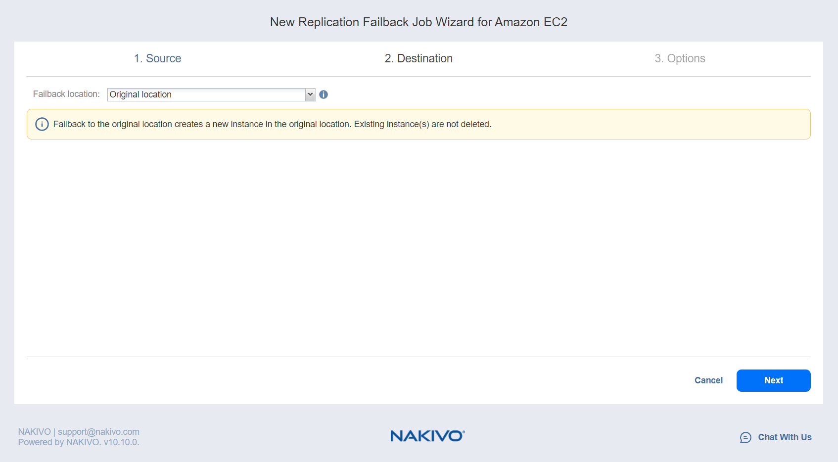 To use the original location as a destination for your Amazon EC2 failback job, follow the steps below: