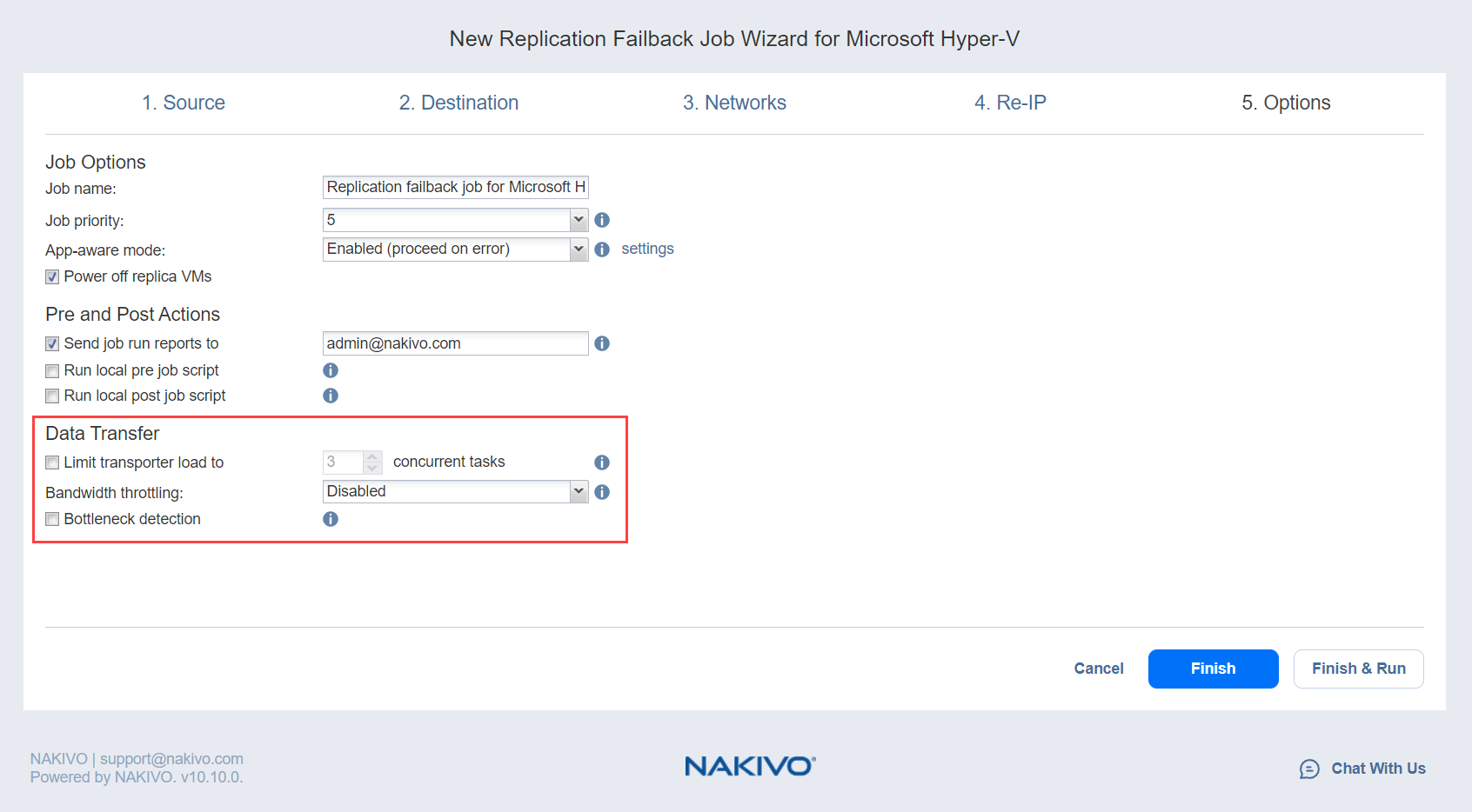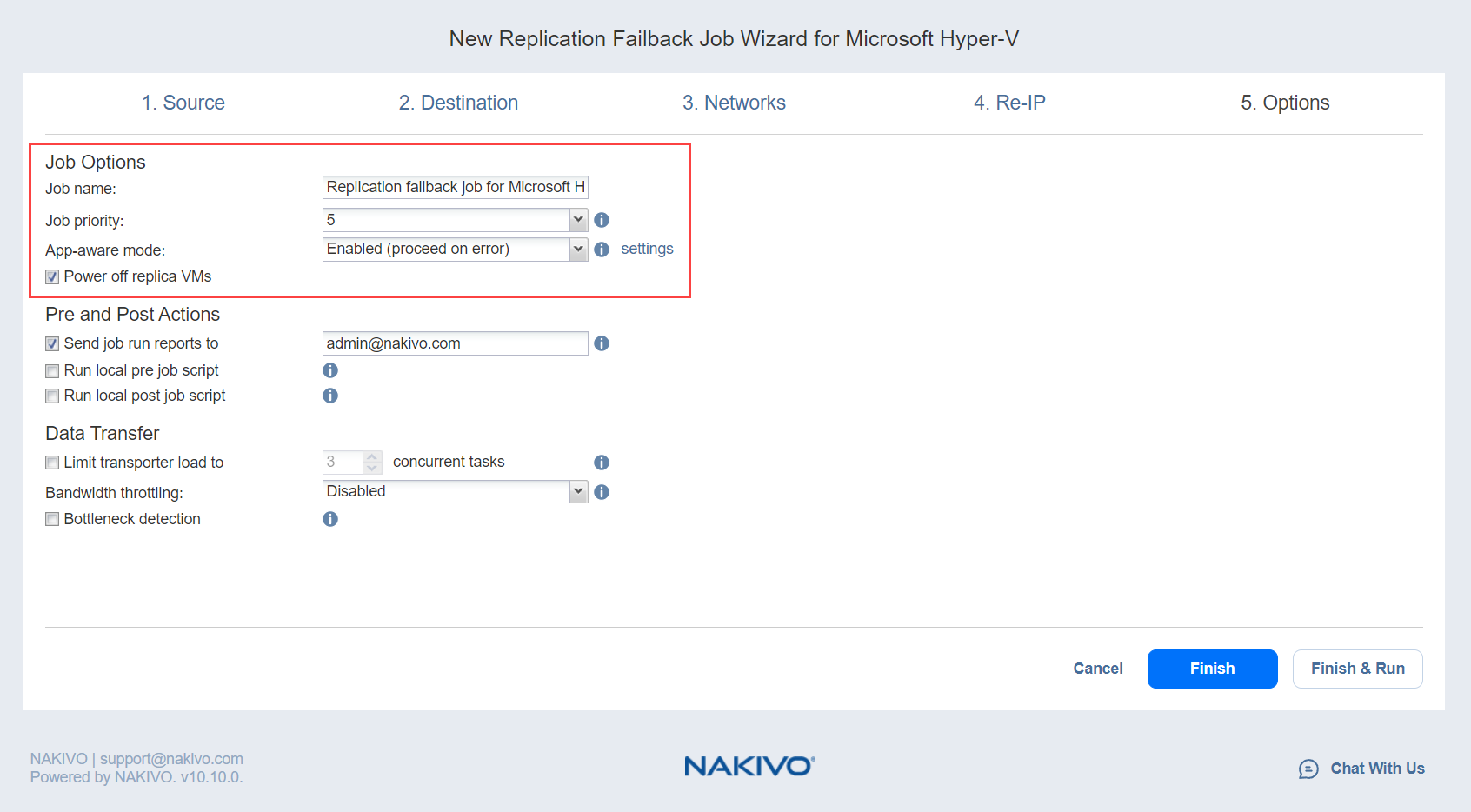 Failback Job Wizard for Microsoft Hyper-V: Options