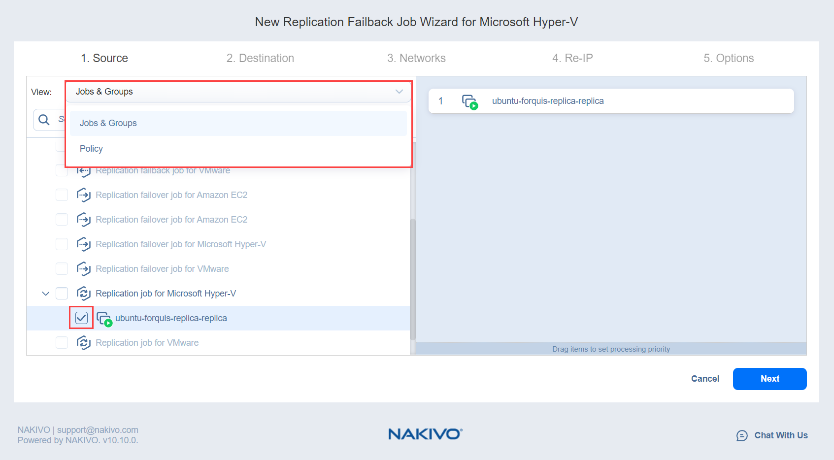 Failback Job Wizard for Microsoft Hyper-V: Source