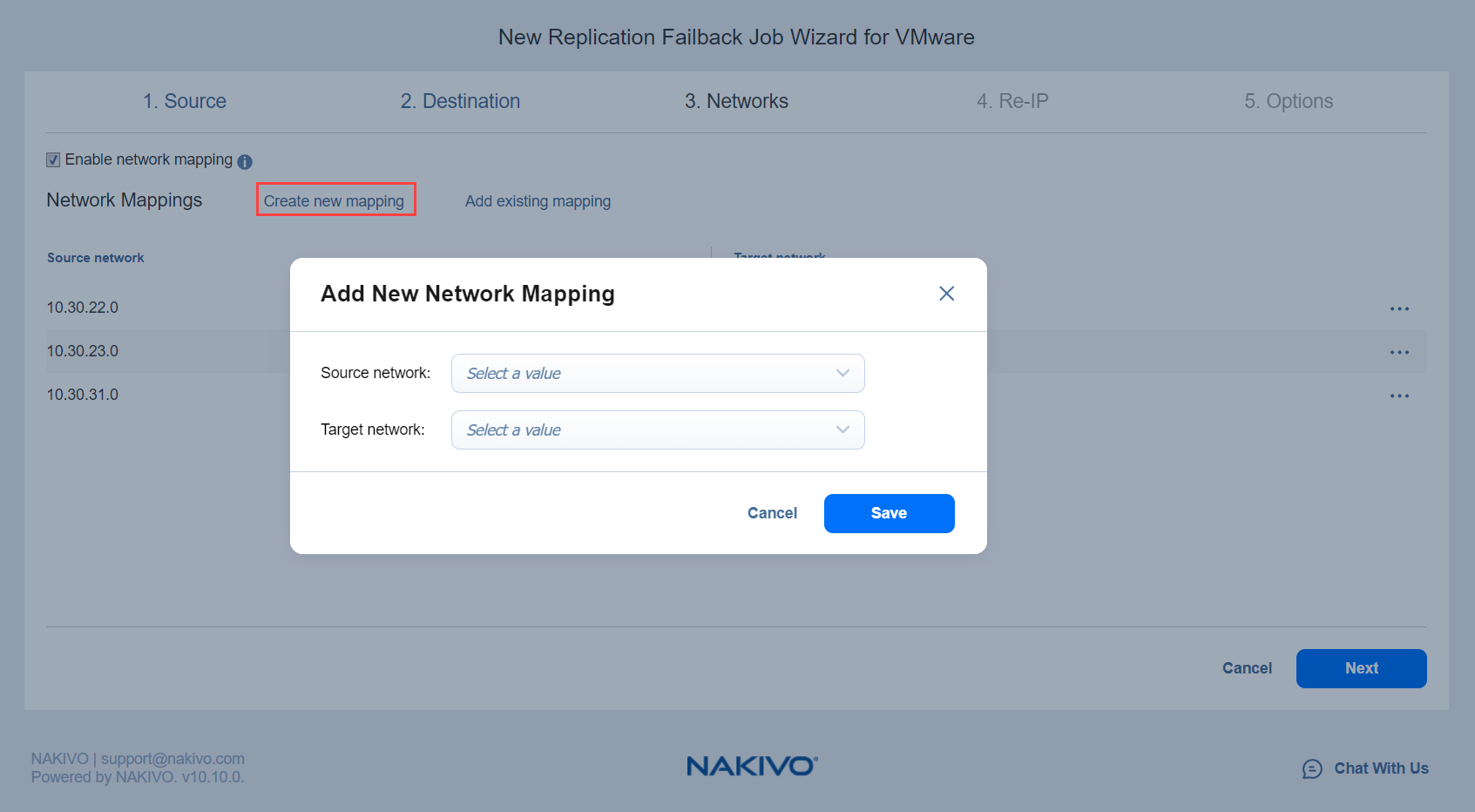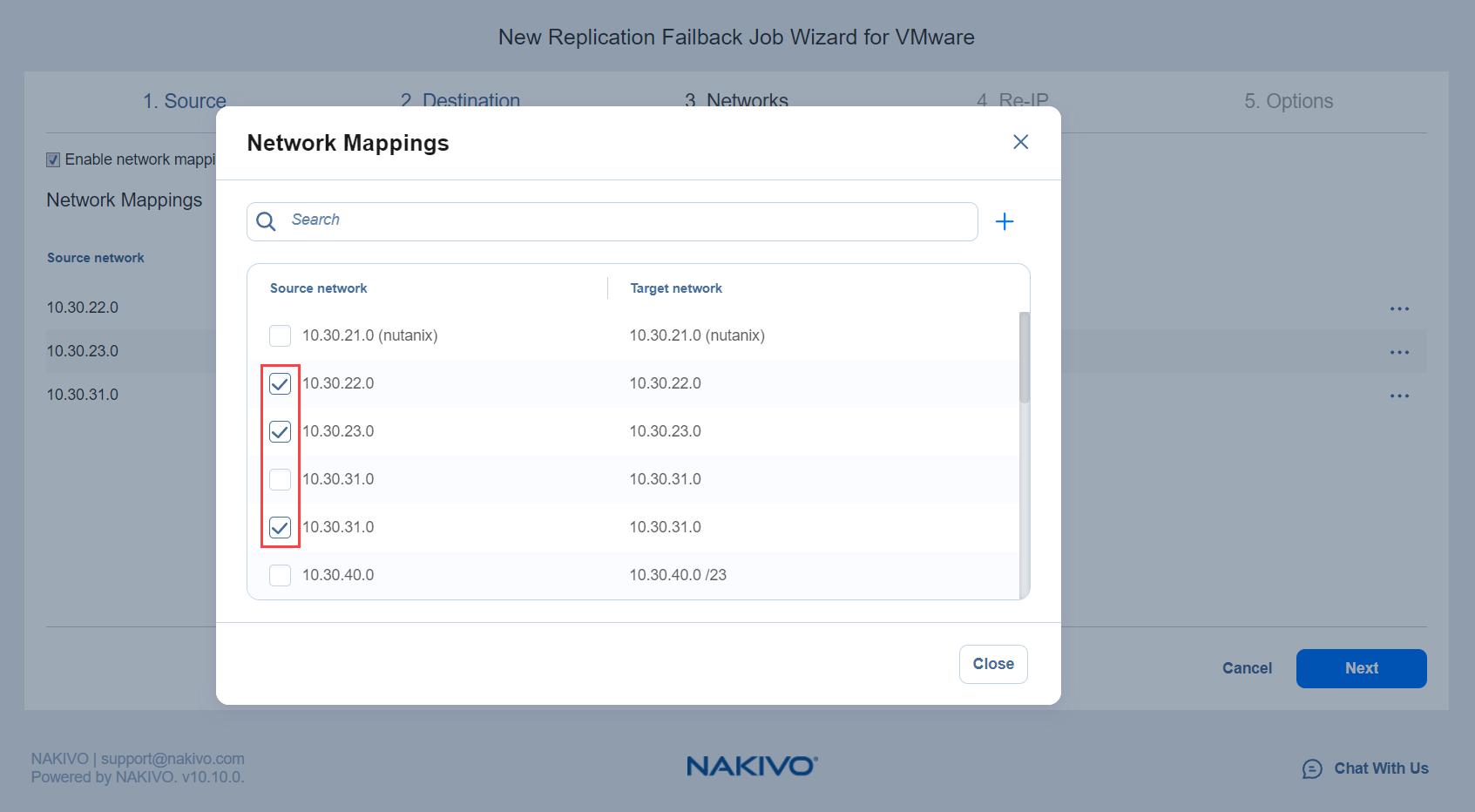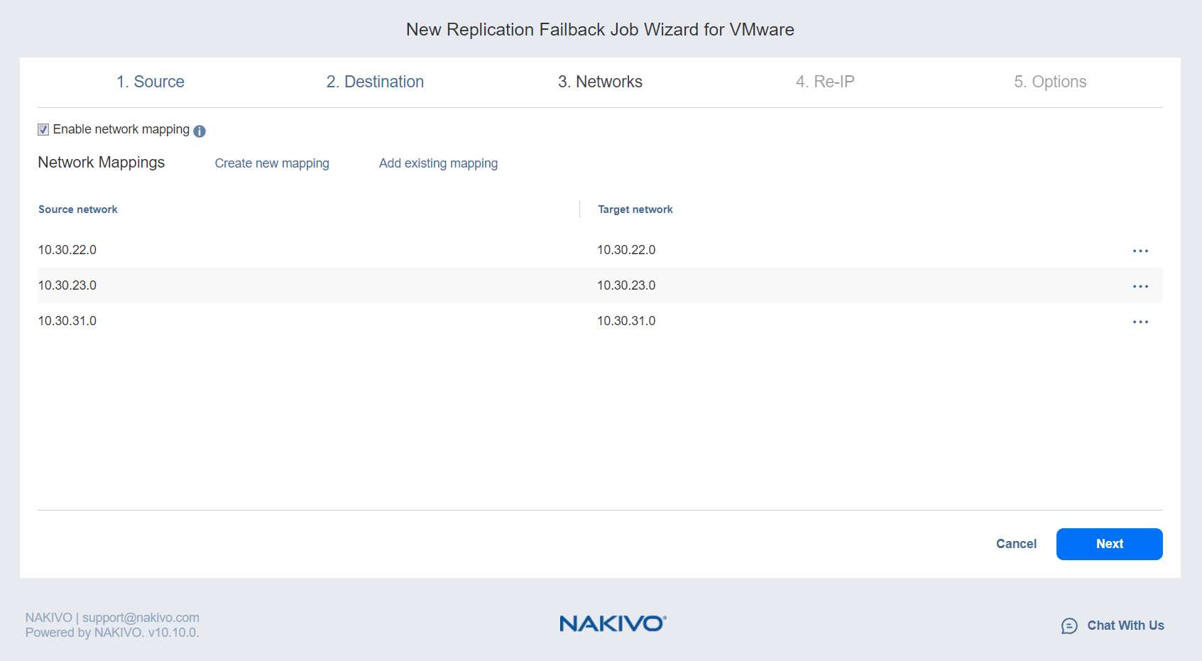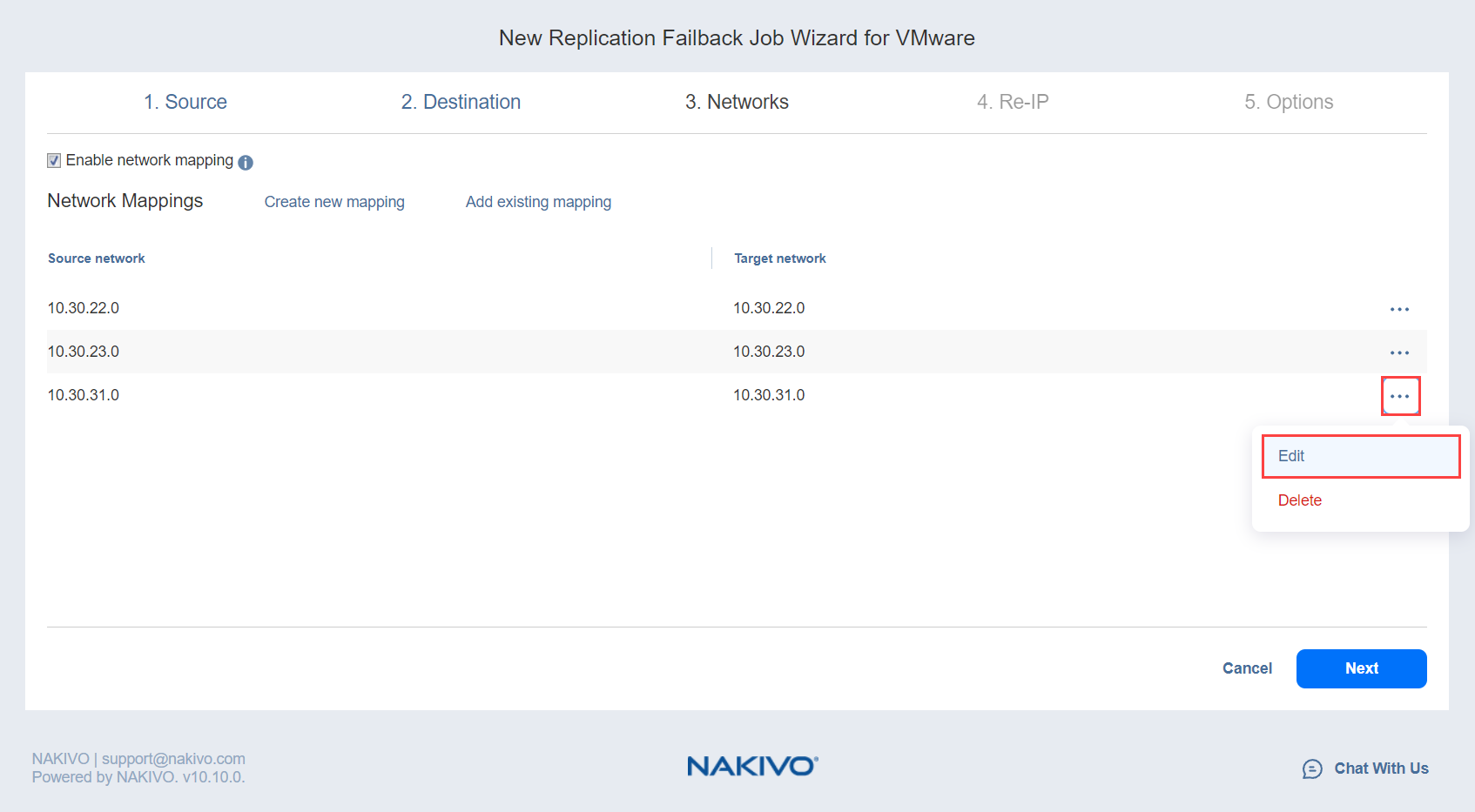 To leave the list of existing network mappings intact, go to the next page of the wizard.