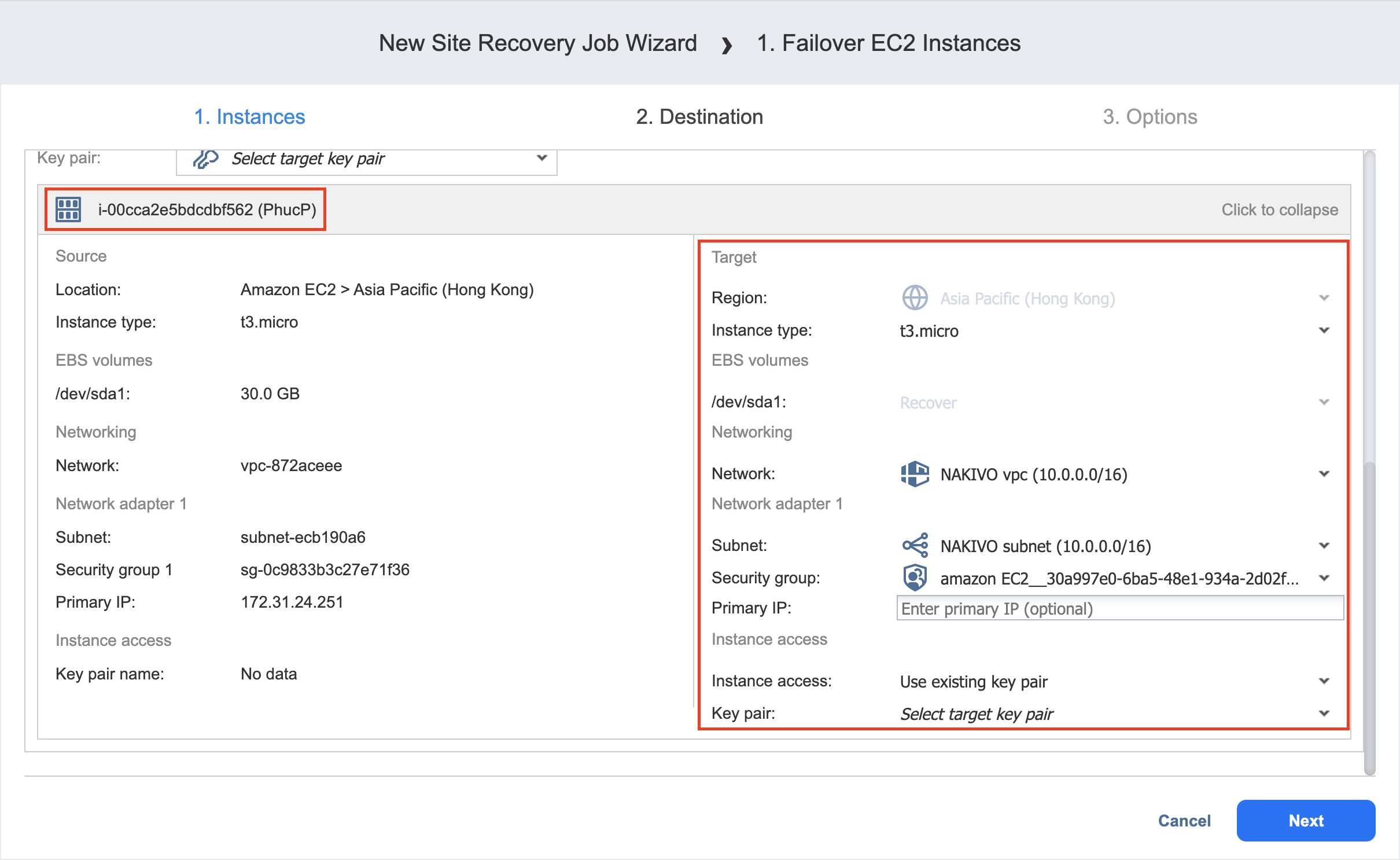 Failover Amazon EC2 Instances: Destination