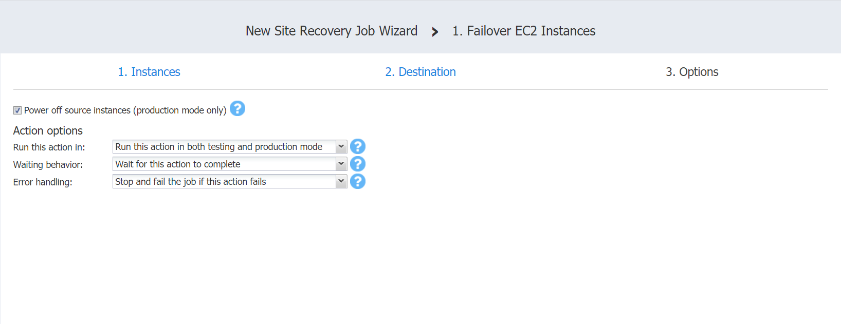 Refer to the following sections on adding a Failover Amazon EC2 Instances action to your Site Recovery job: