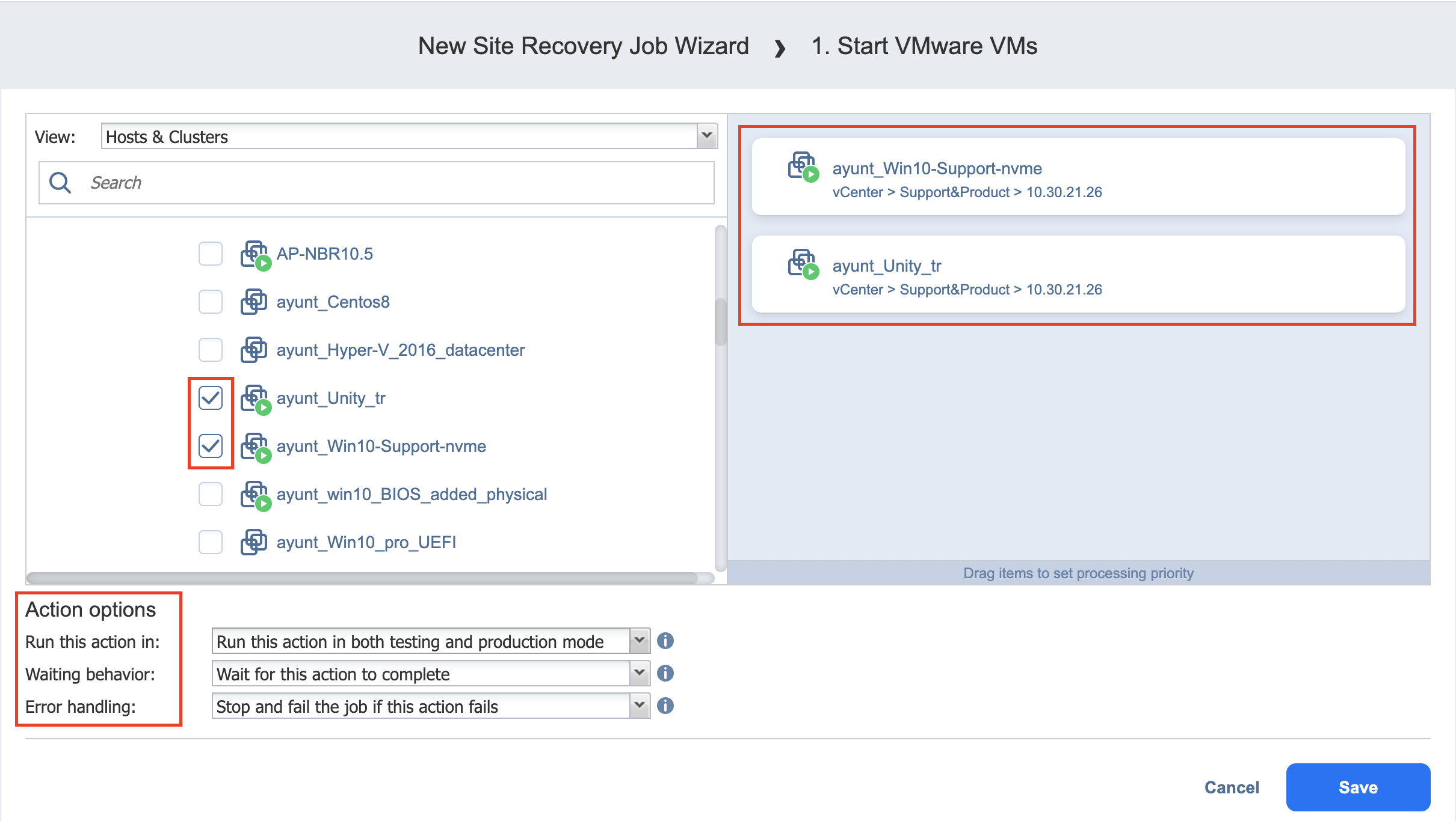 Set the action options. Refer to Site Recovery Job Wizard: Actions for details.