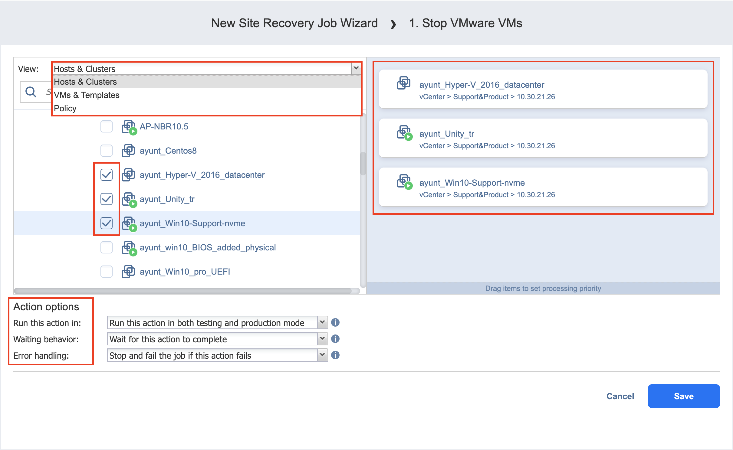 Set action options. Refer to Site Recovery Job Wizard: Actions for details.