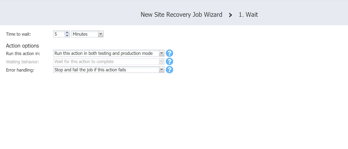 To add a wait action to your Site Recovery job, on the Wait page of the wizard, do the following: