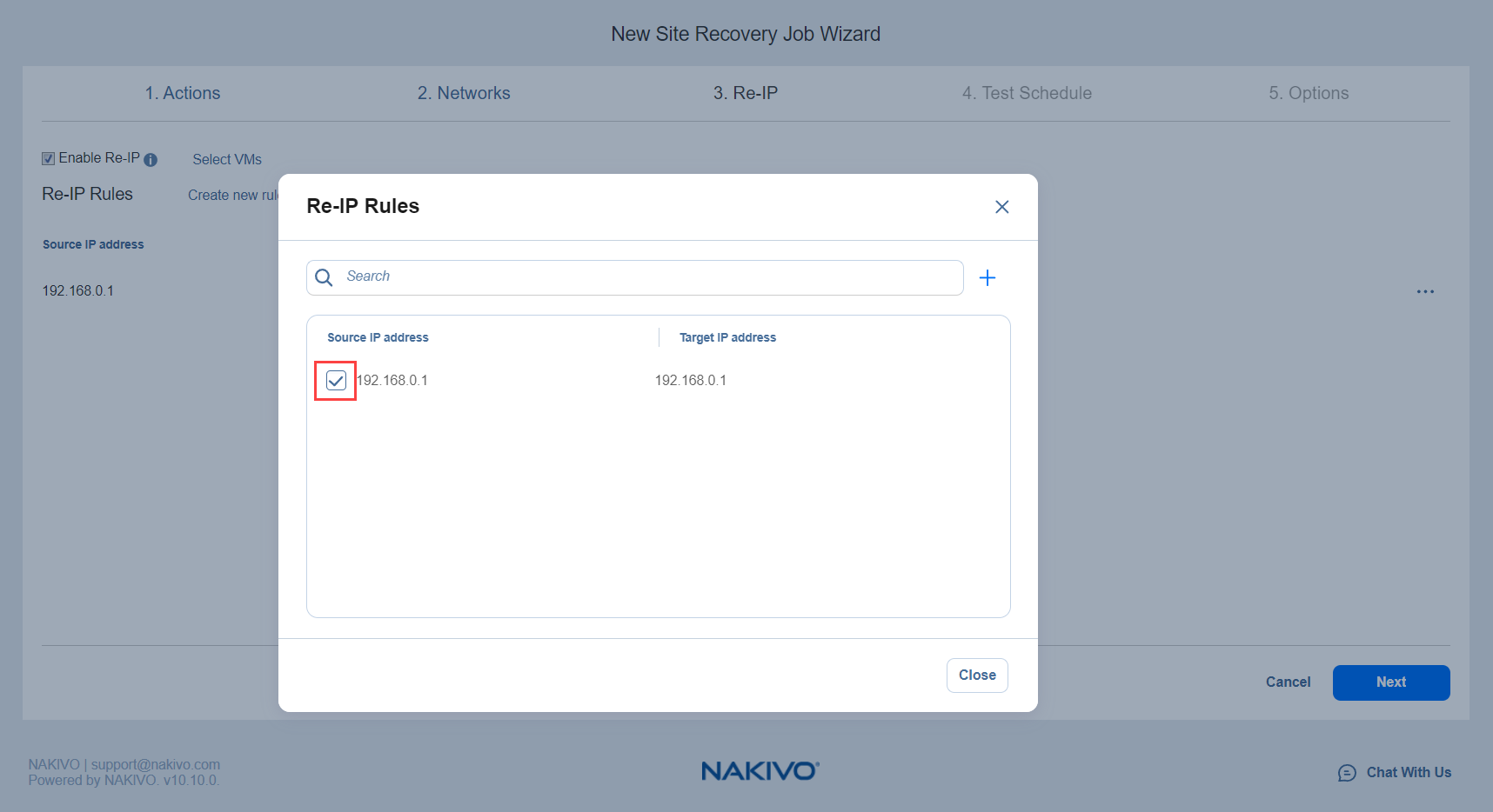 Site Recovery Job Wizard: Re-IP