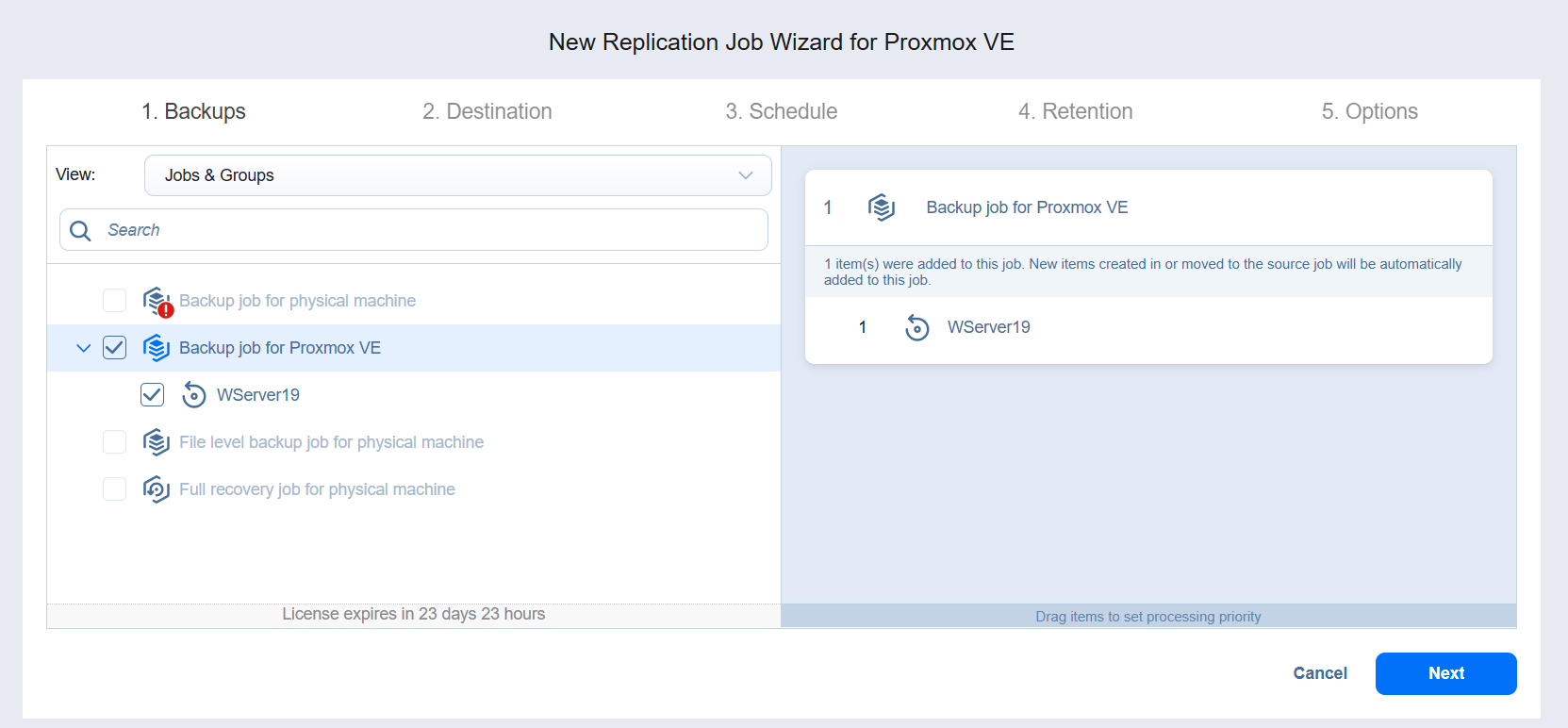 By adding a Proxmox VE container to the job, you ensure that important VMs are always protected. If you add a Proxmox VE container to the job: