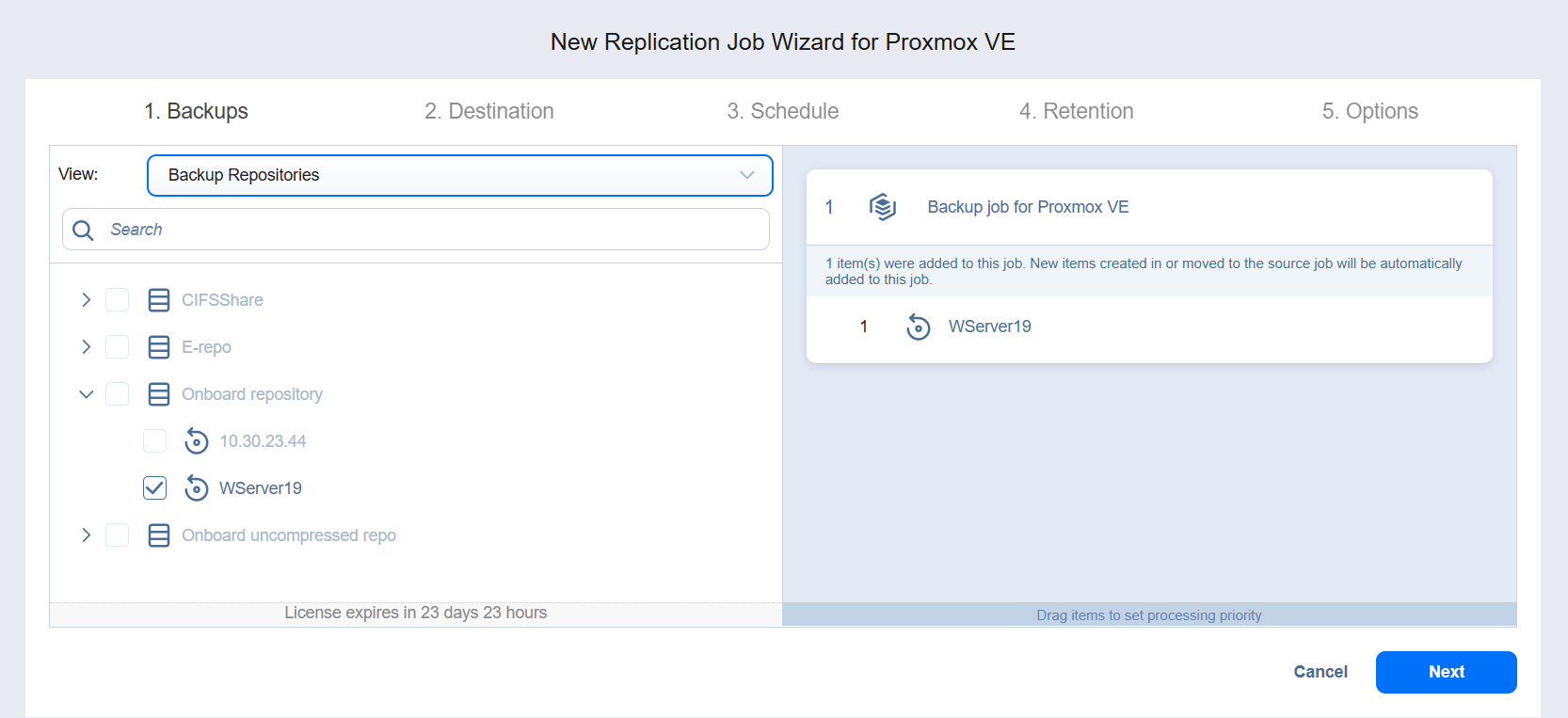 Replication Job Wizard for Proxmox VE: Source