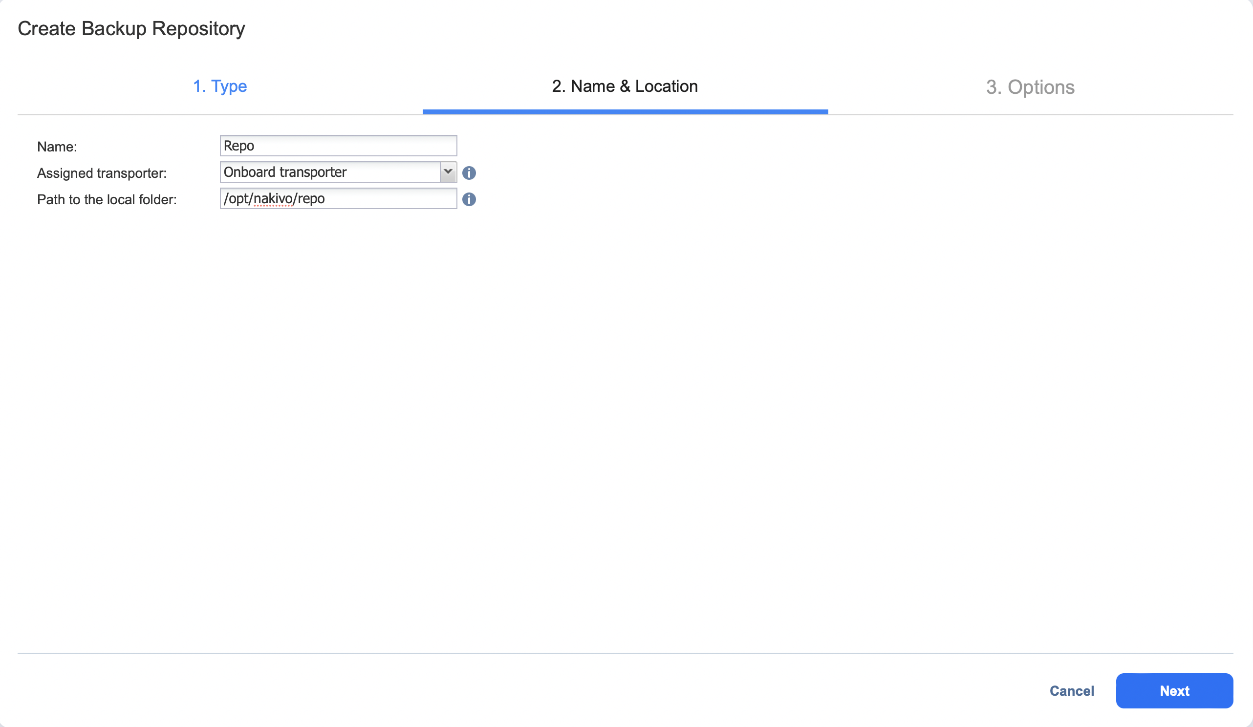 - Create Backup Repository: Name and Location