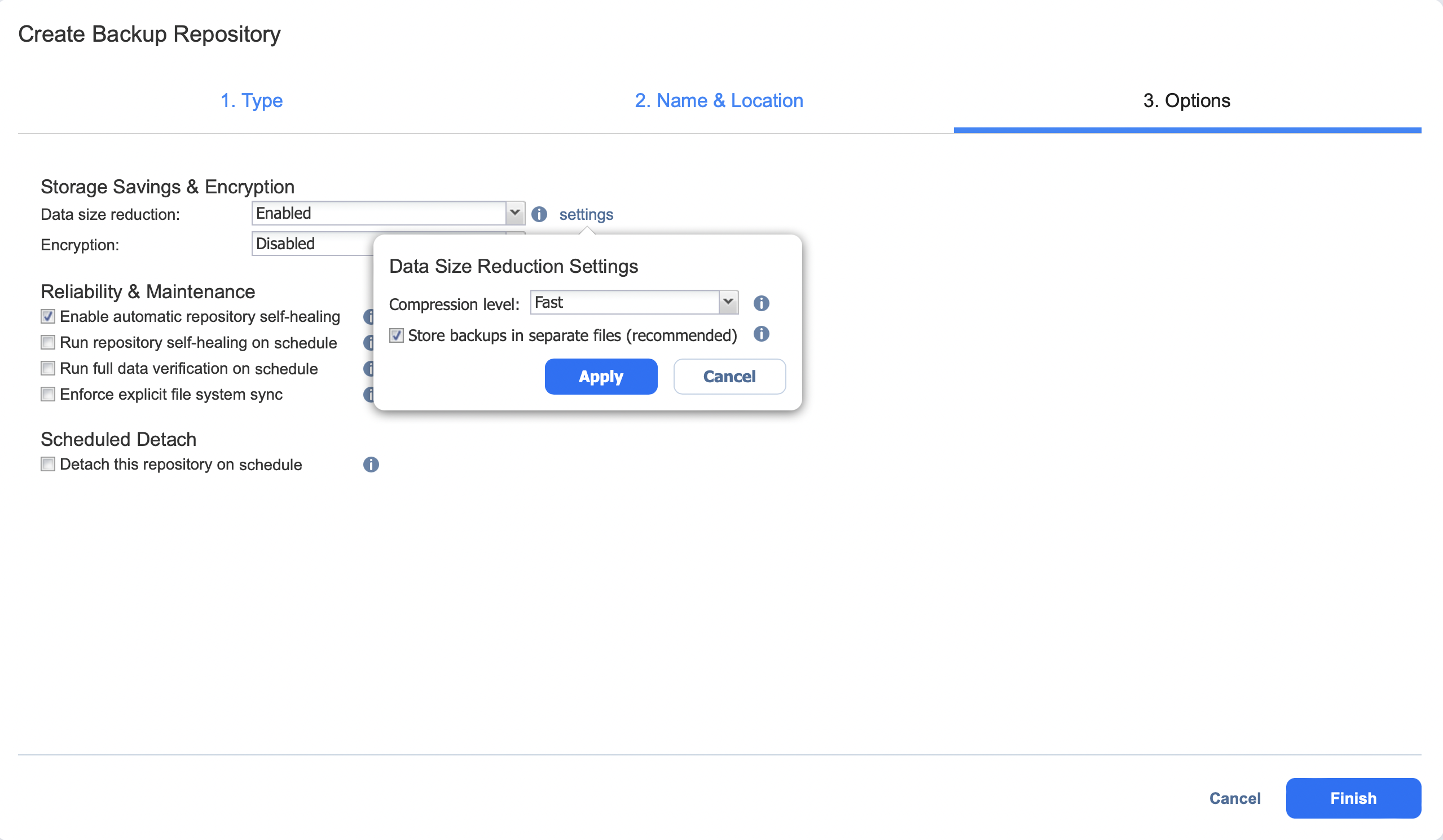 - Create Backup Repository: Options