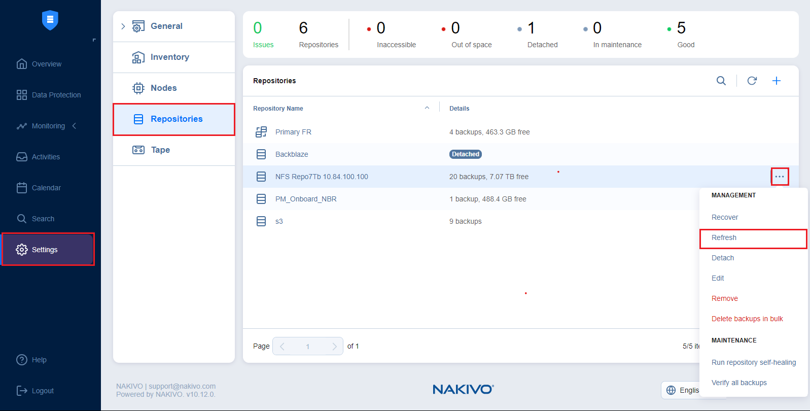 To refresh all backup repositories, follow the steps below: