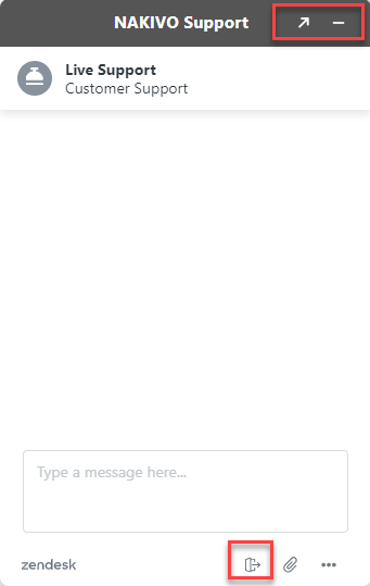 In the lower right corner of the built-in Live Support Chat dialog, click the ... (ellipsis) button.