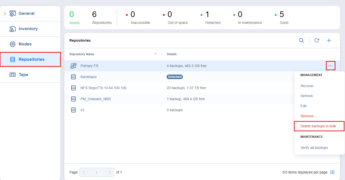 On the right side, click the ellipsis Manage button and then click Delete backups in bulk.