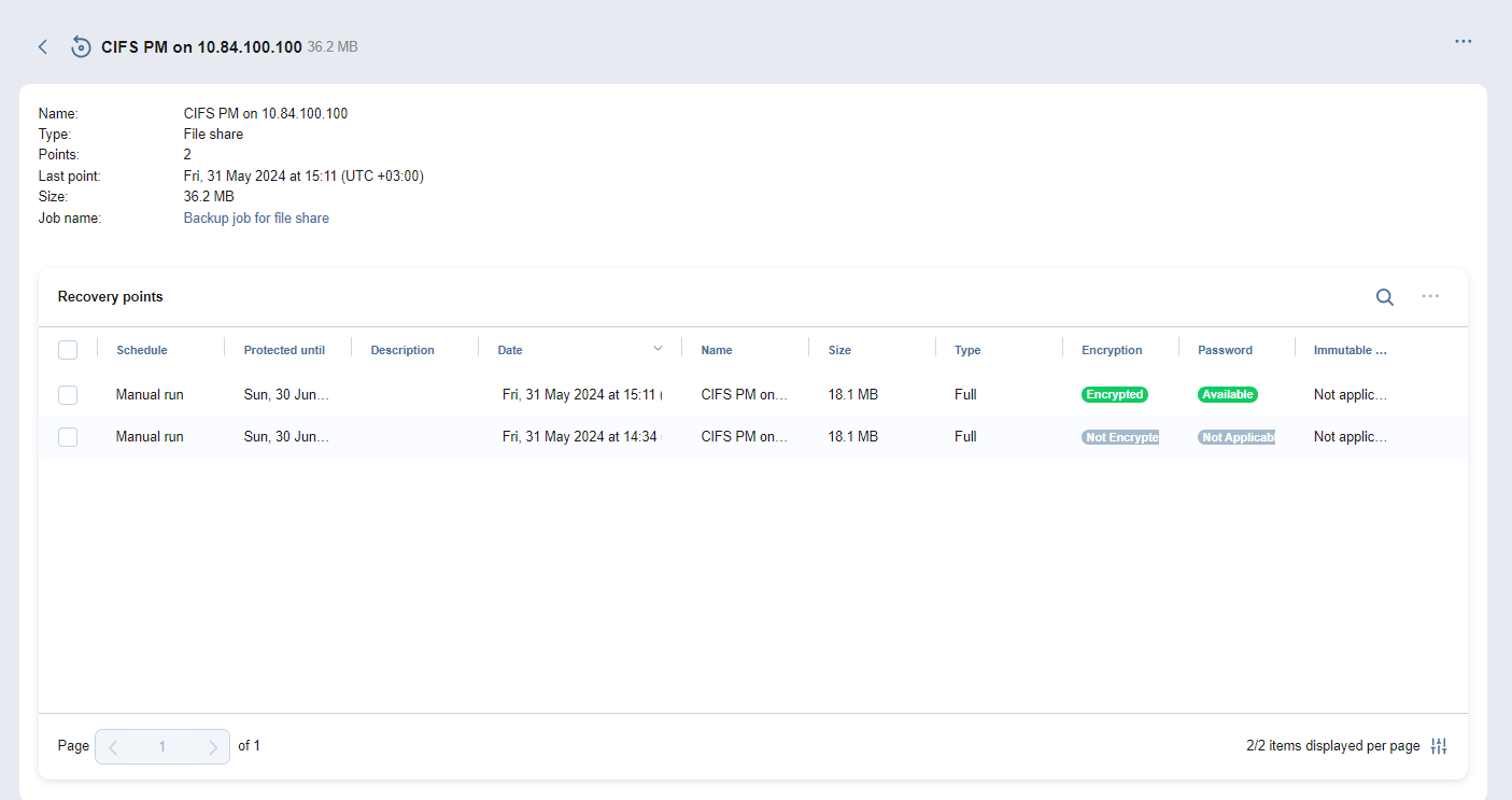 For recovery points belonging to jobs using legacy retention settings, Use job retention is displayed under Protected until instead.