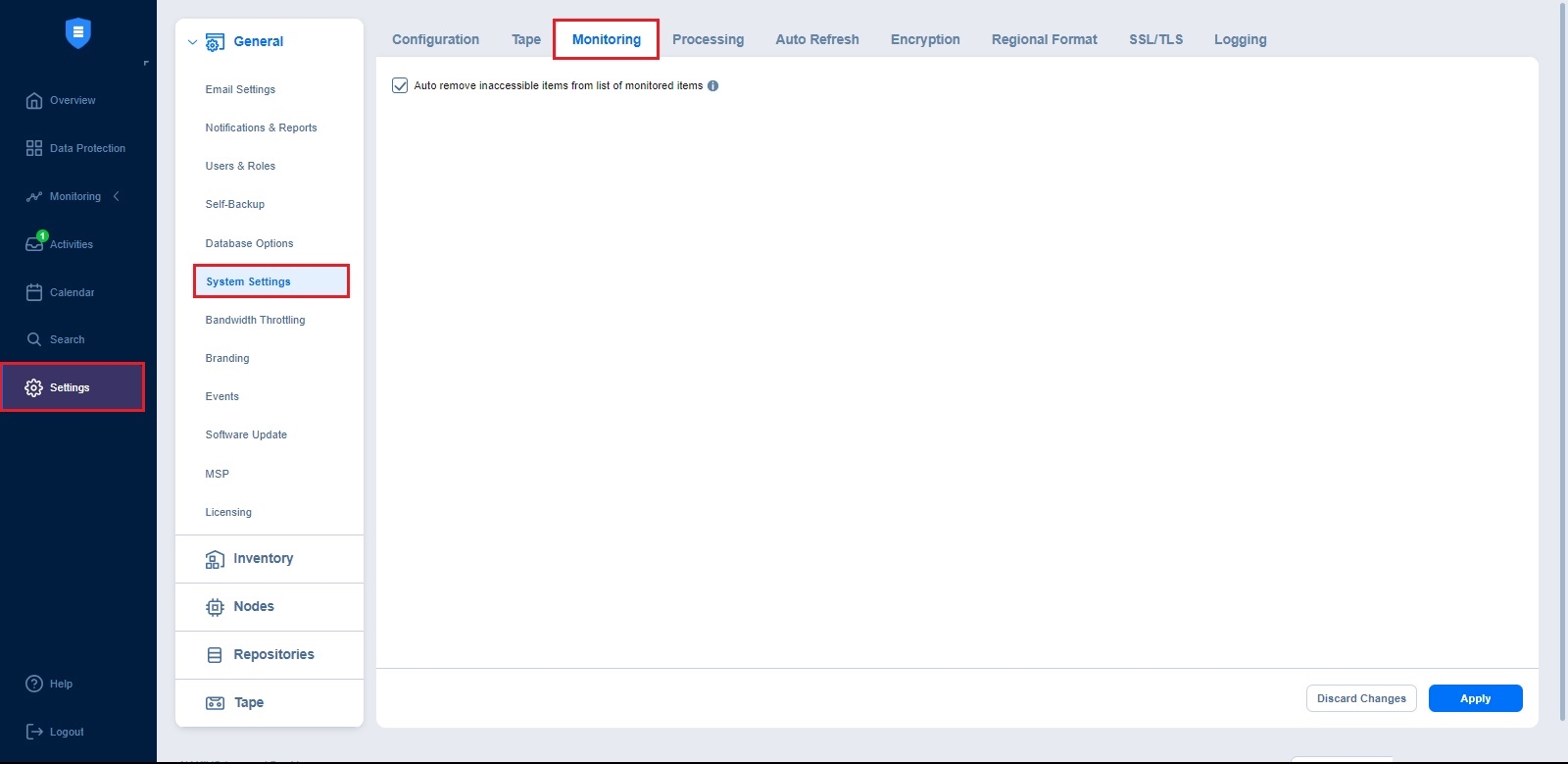 4. After making the necessary changes, click Apply. Alternatively, click Discard Changes to discard any changes you have made.