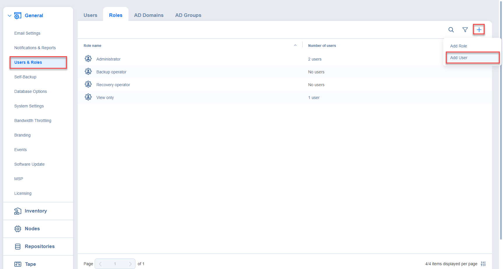 Alternatively, you can switch to the Roles tab, click on the "+" icon and select Add User.