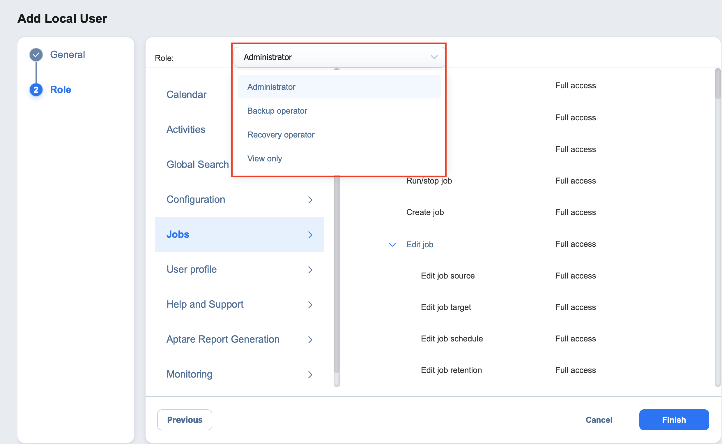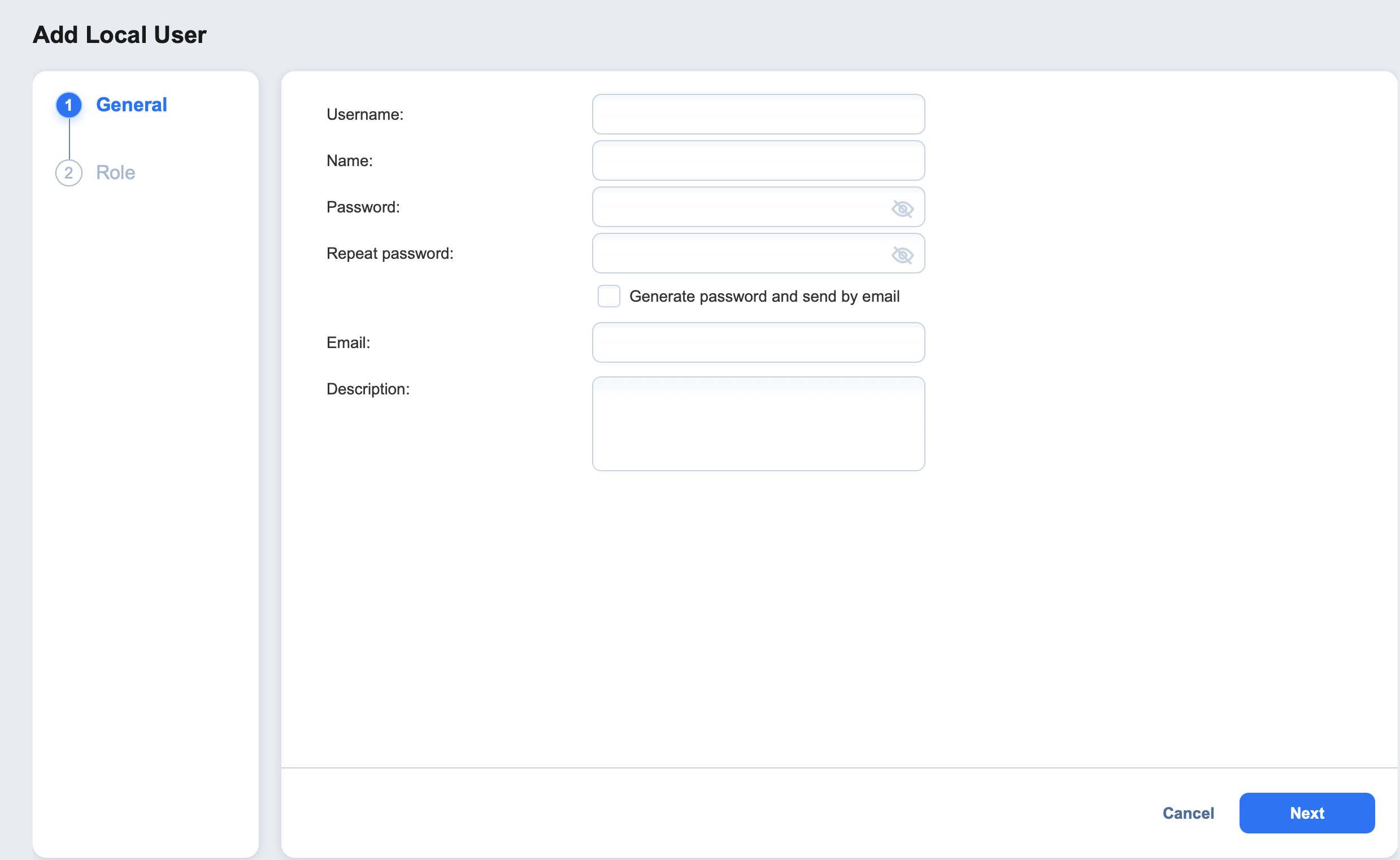 In the Role dropdown list, select a user role. Refer to Managing User Roles for more details about user roles.
