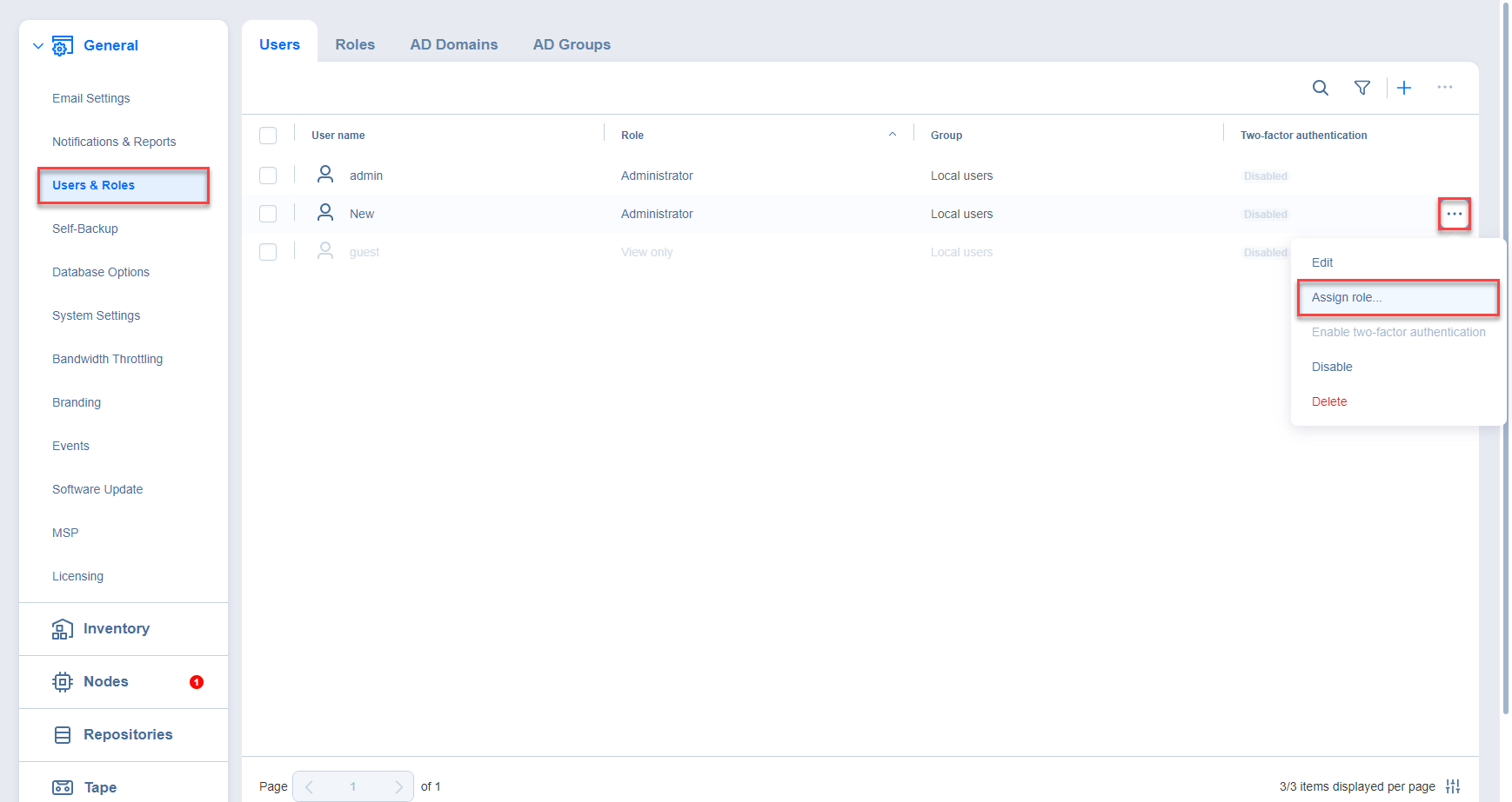 3. In the resulting menu, click Assign role.