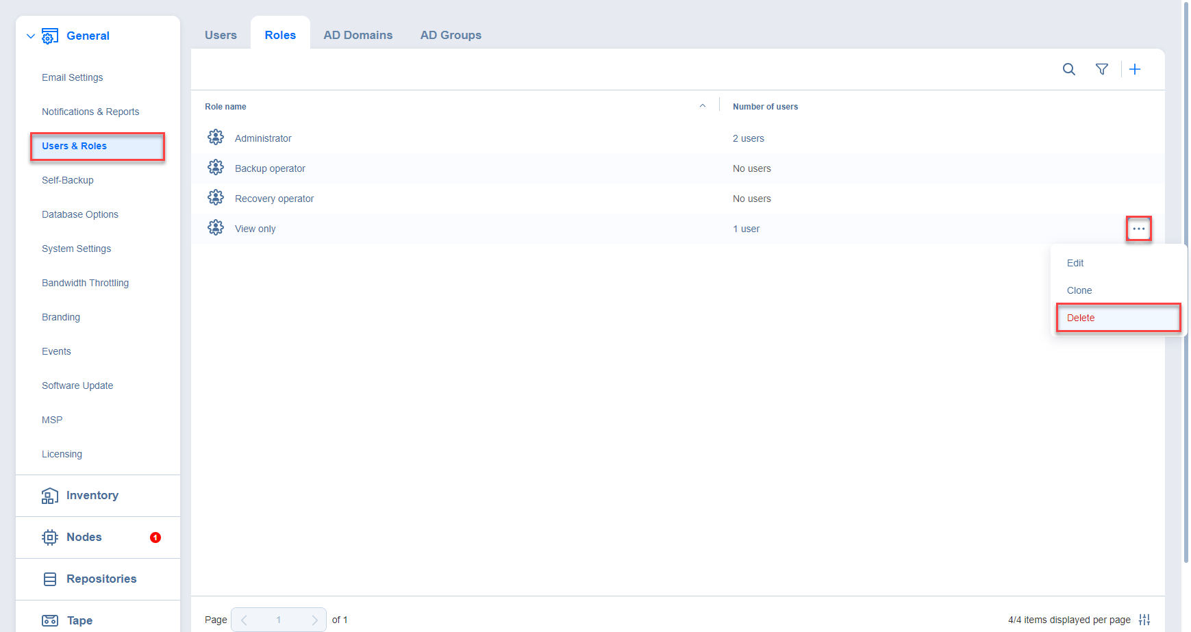 Follow the steps below to delete a user role: