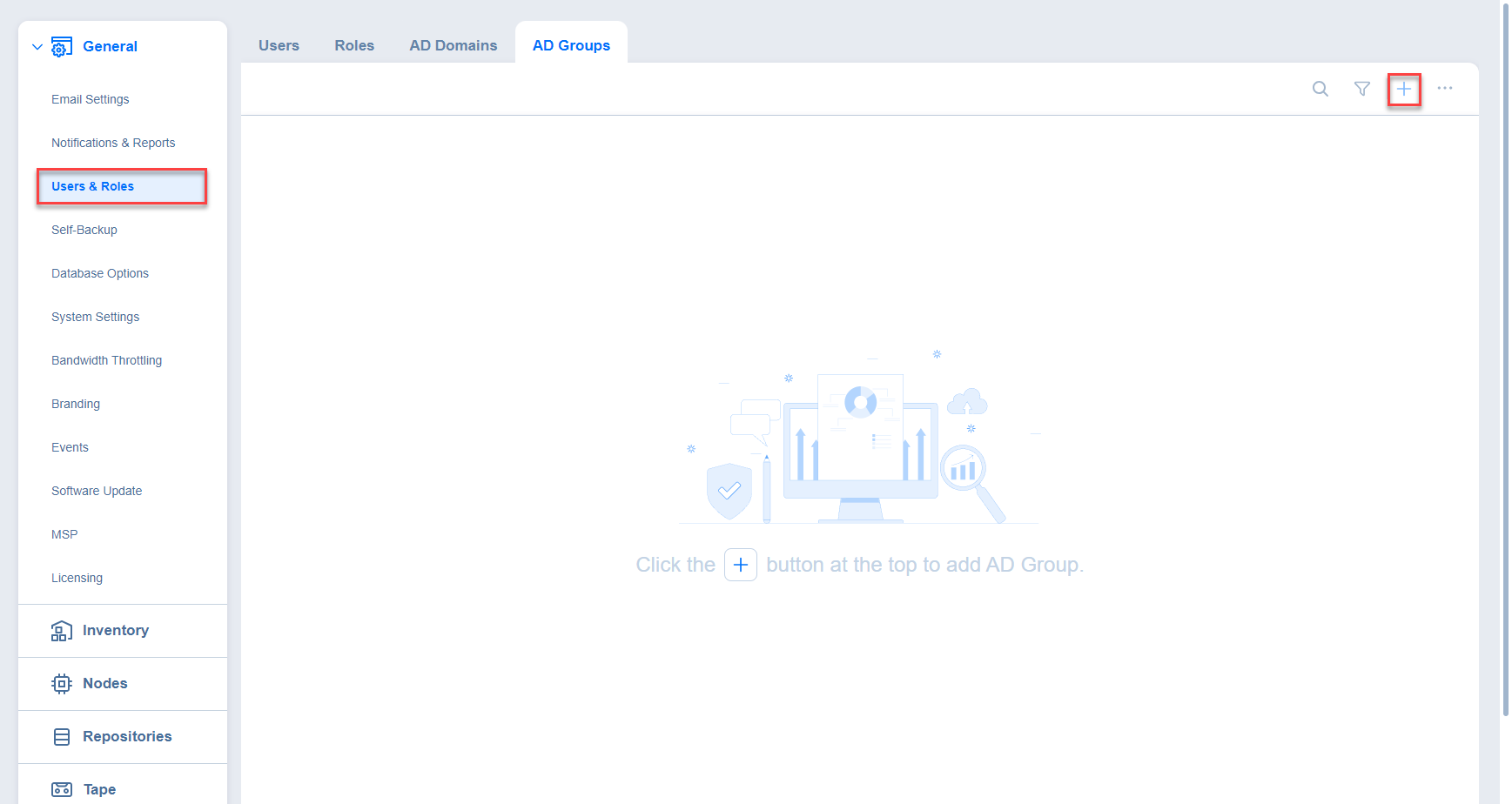 See the list of all AD groups added to NAKIVO Backup & Replication.