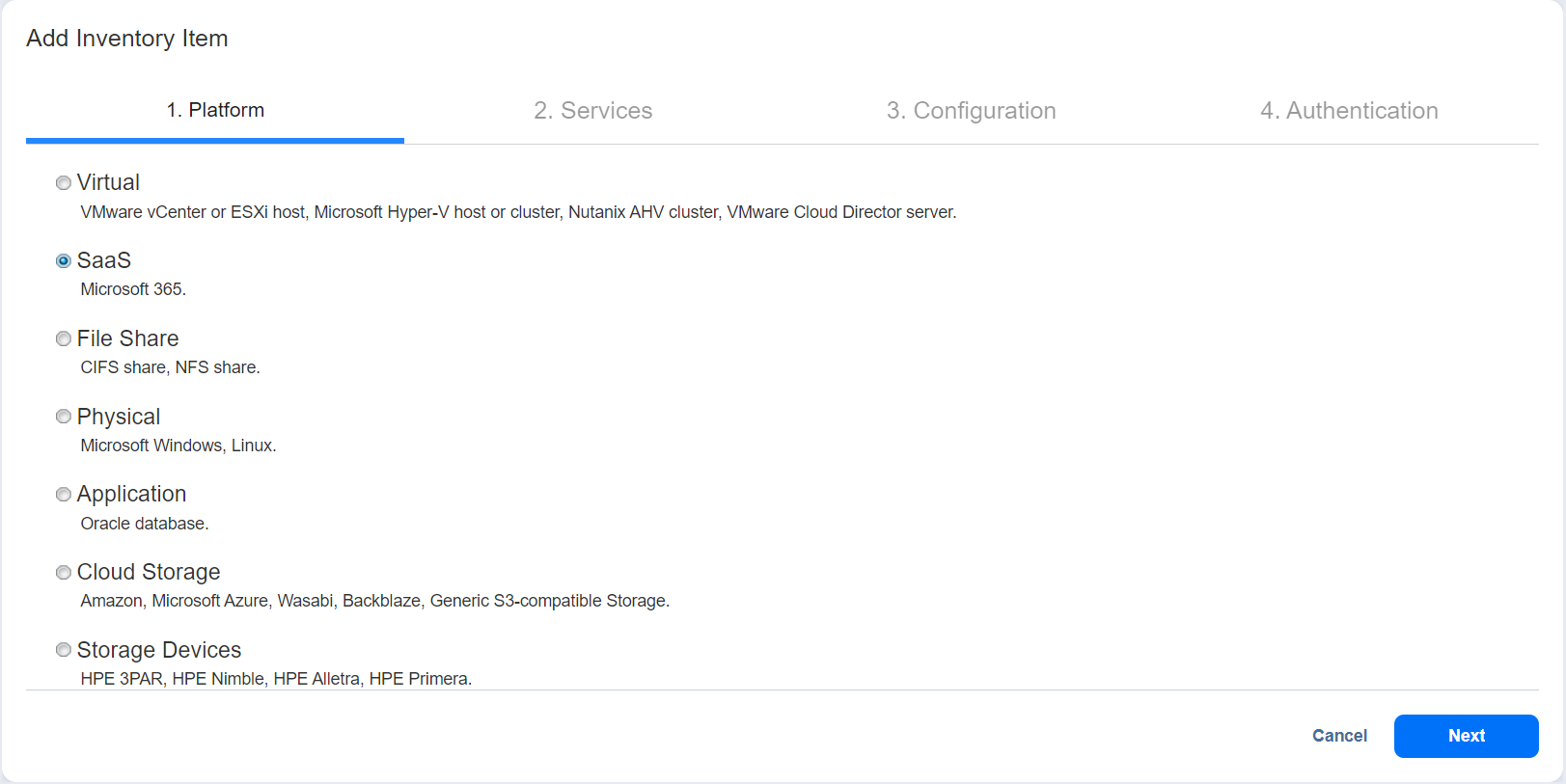 4. On the Platform page of the wizard, select SaaS. Click Next to proceed.
